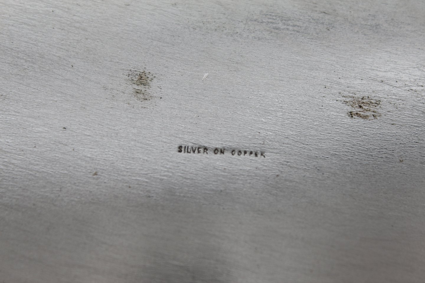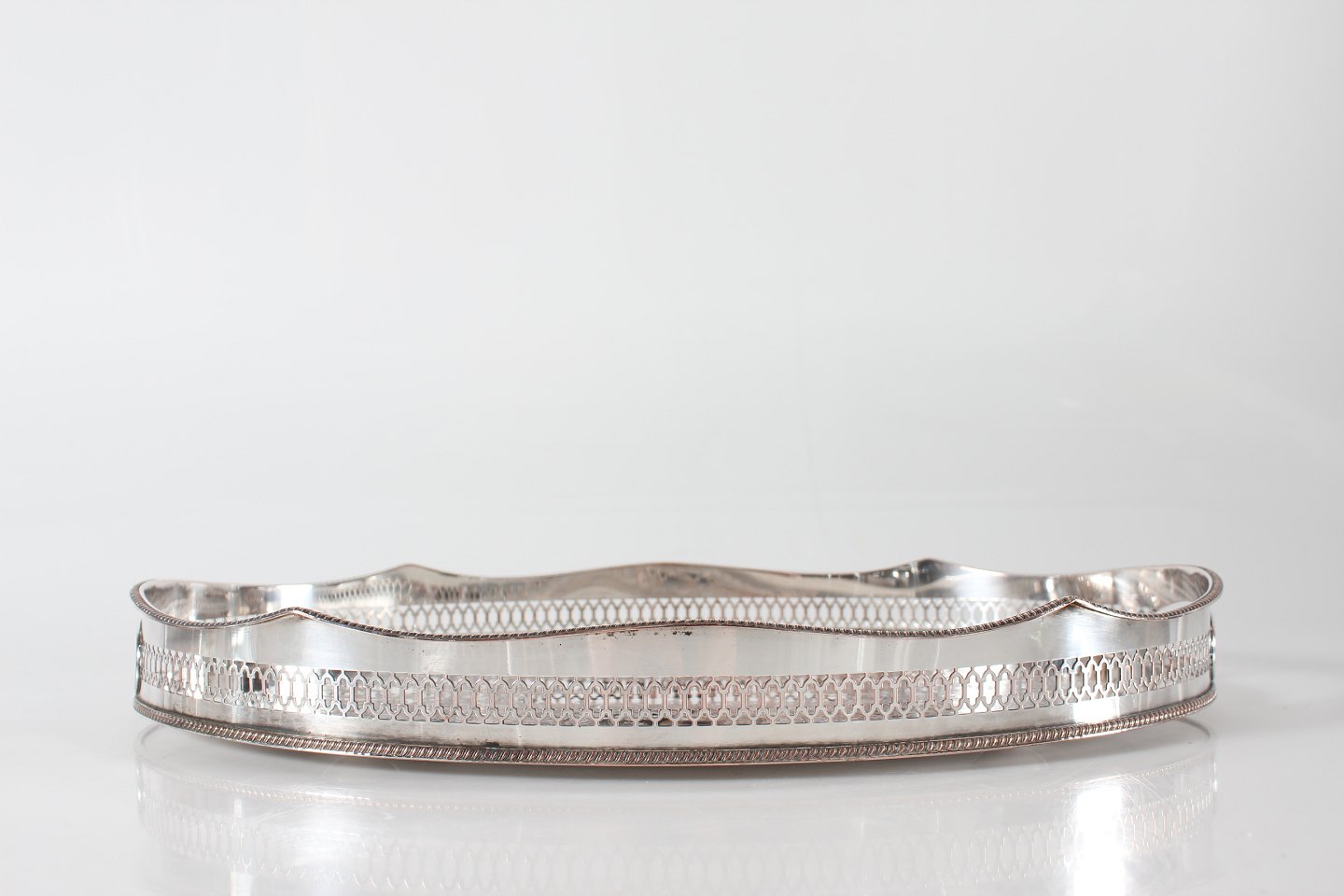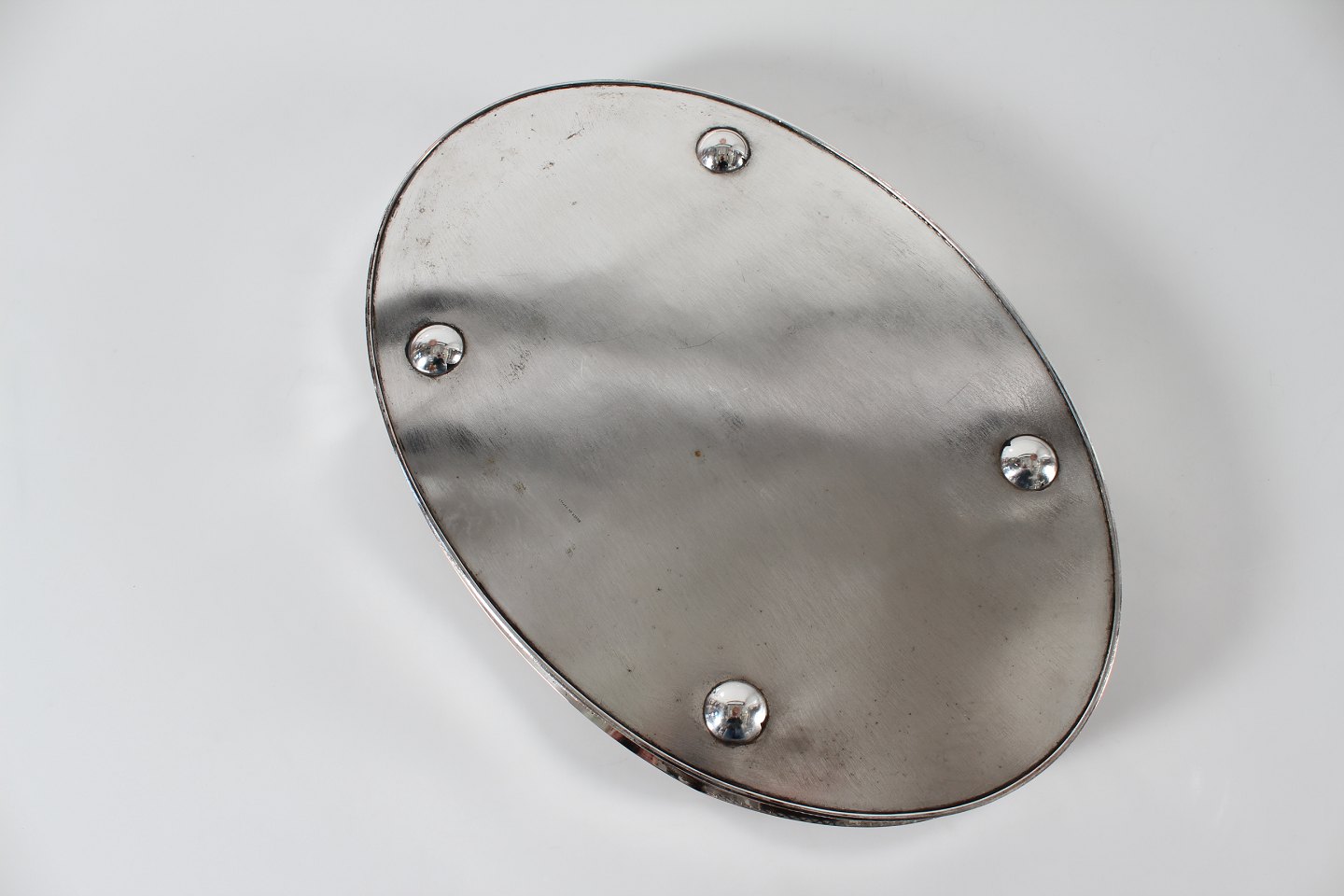 English Silver Large oval silver-plated serving tray with handles Made in England circa 1900 Length 45 cm Width 31 cm Height 5 cm Nice vintage condition with patina