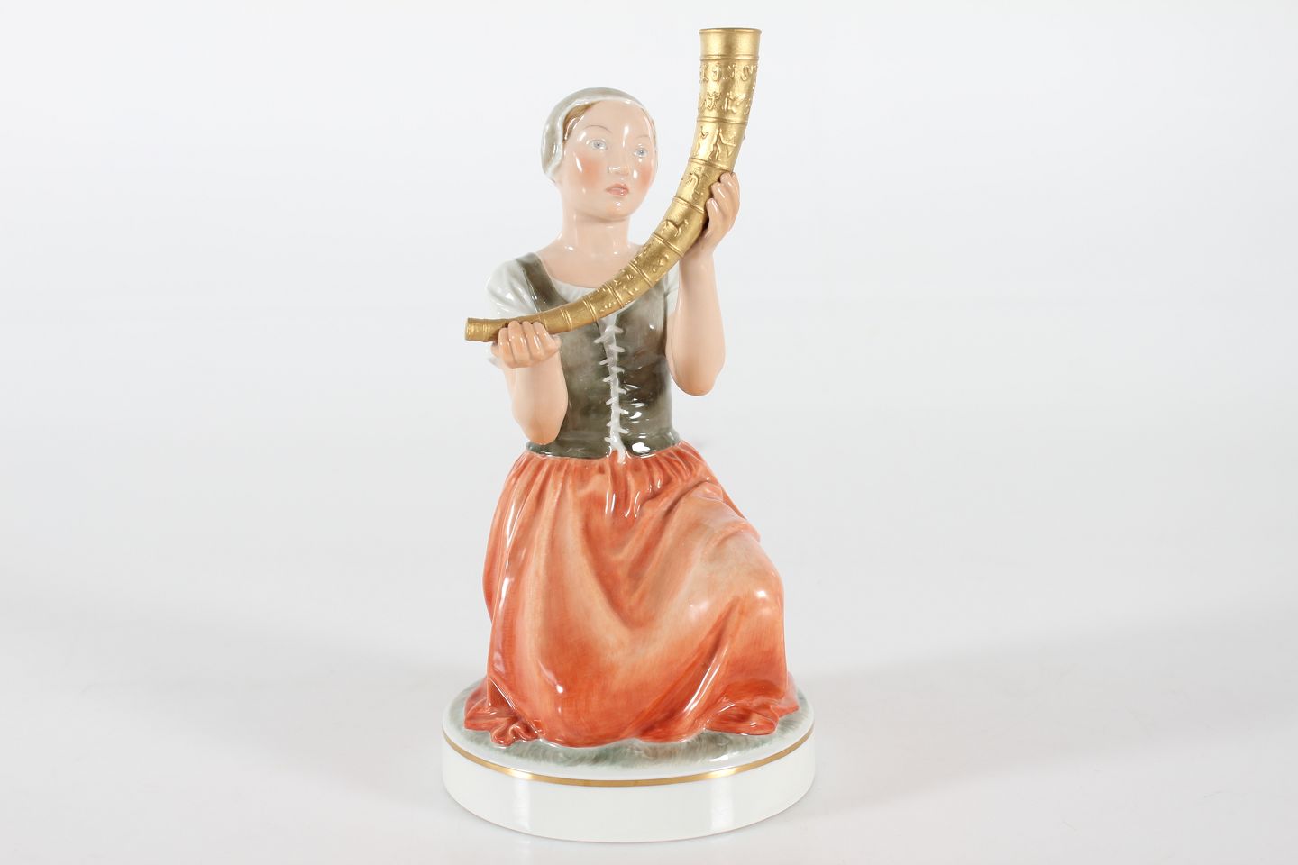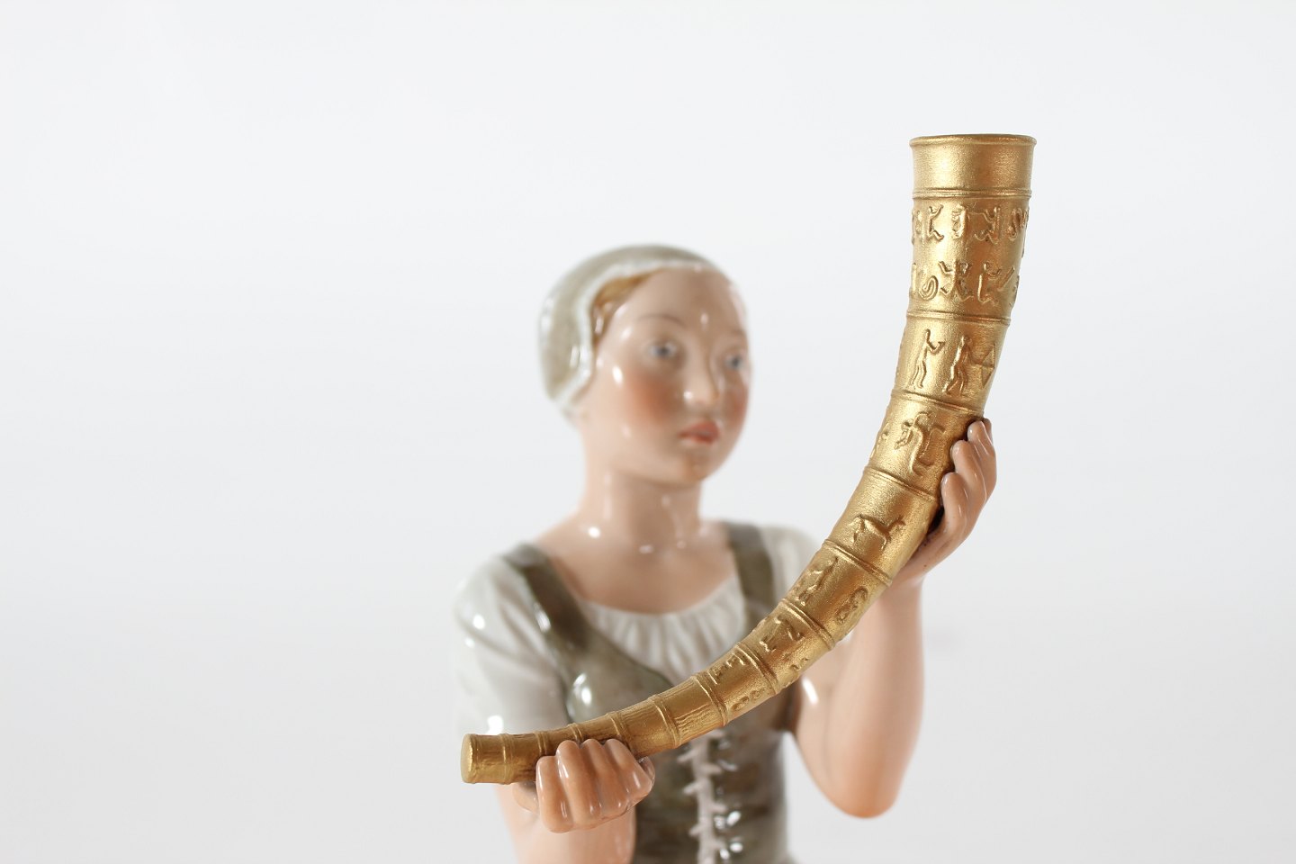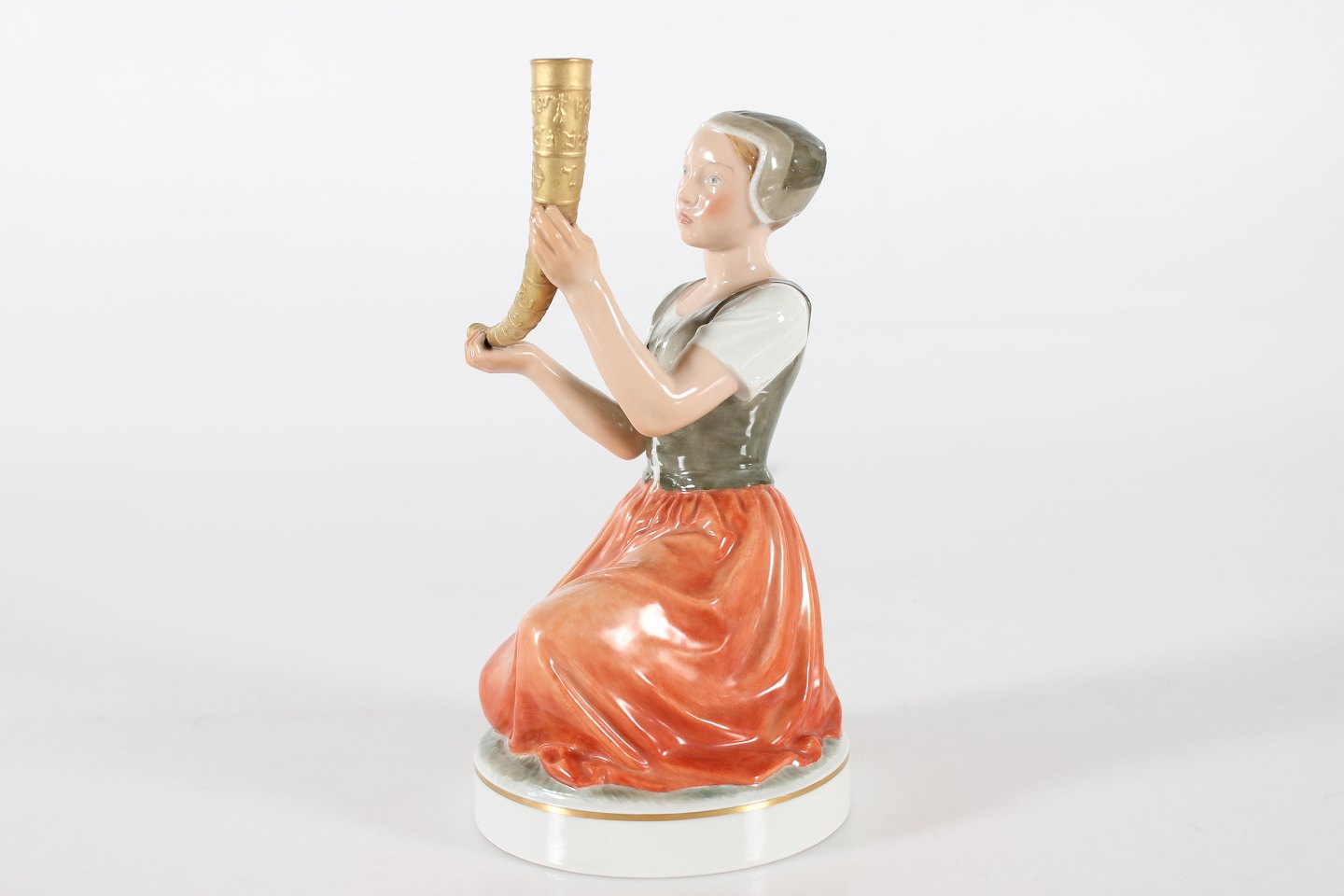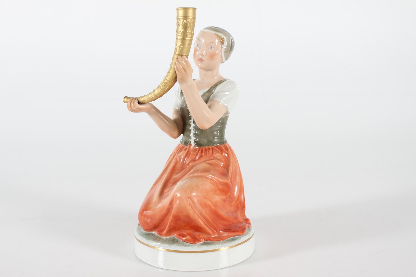 Royal Copenhagen figurine Girl with the gold horn model no. 12242 designed by Holger Christensen Height 21.5 cm Diameter base 11 cm 1. quality - mice condition, no chips or cracks