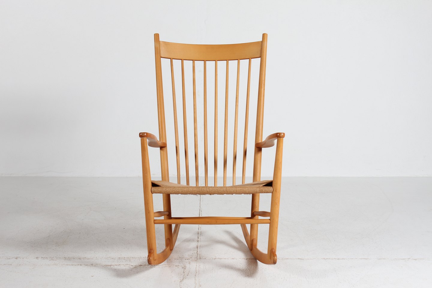 Hans J. Wegner (1914-2007) Rocking Chair model J 16 made in the 1970s of solid beech with lacquer and original paper cord Height 100 cm Width 63 cm Made for FDB Møbler in Denmark Nice vintage condition with patina