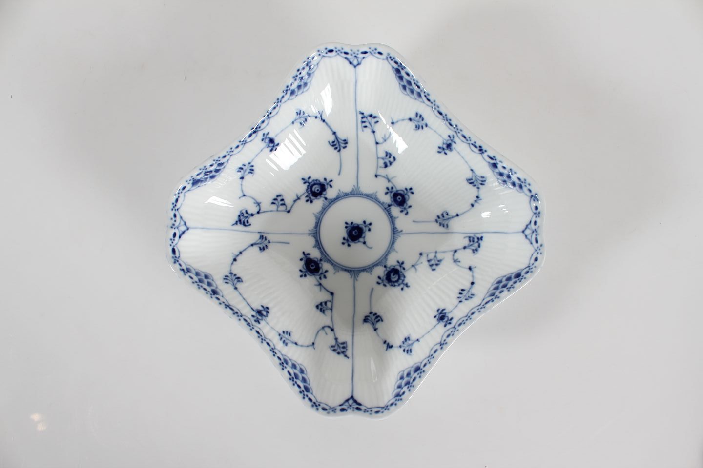 Royal Copenhagen Blue Fluted Half Lace Square bowl no. 1/587 Length 20 cm Width 20 cm 1. quality - no chips or repair