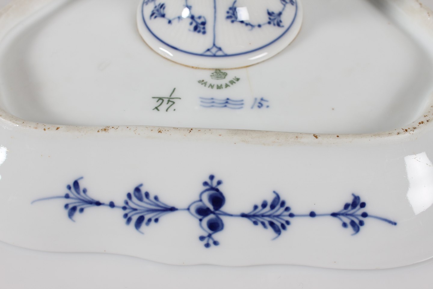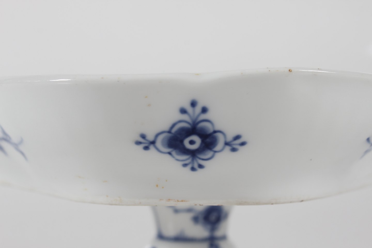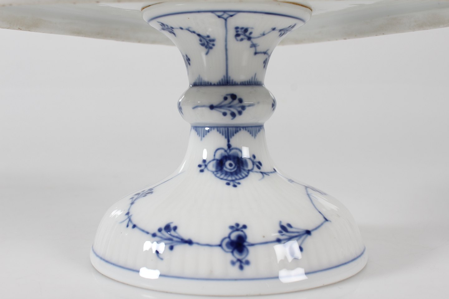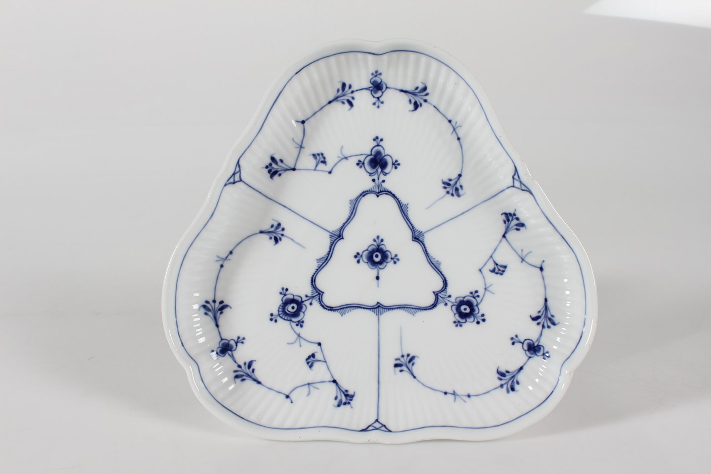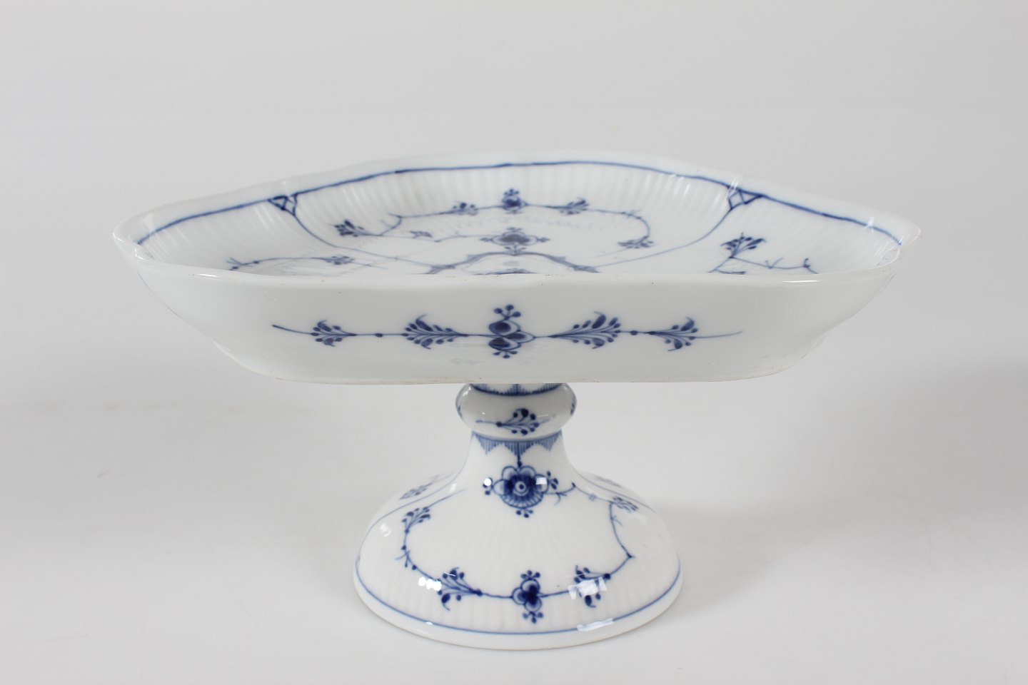 Royal Copenhagen Blue Fluted Plain Triangular cake stand no. 1/19 + 1/27 with stamp from the period 1894-1922 Height 12,5 cm Diameter ca. 22 cm Factory 1. Very nice condition - no chips, cracks or repairs