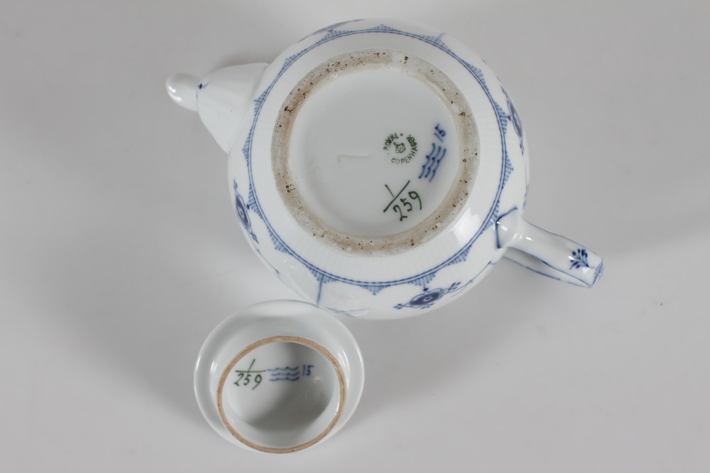 Royal Copenhagen Blue Fluted Plain Antique teapot no. 1/259 With stamp from the period 1894-1922 Height 15 cm Contain: 1 L Factory 1. Very nice condition without chips or cracks