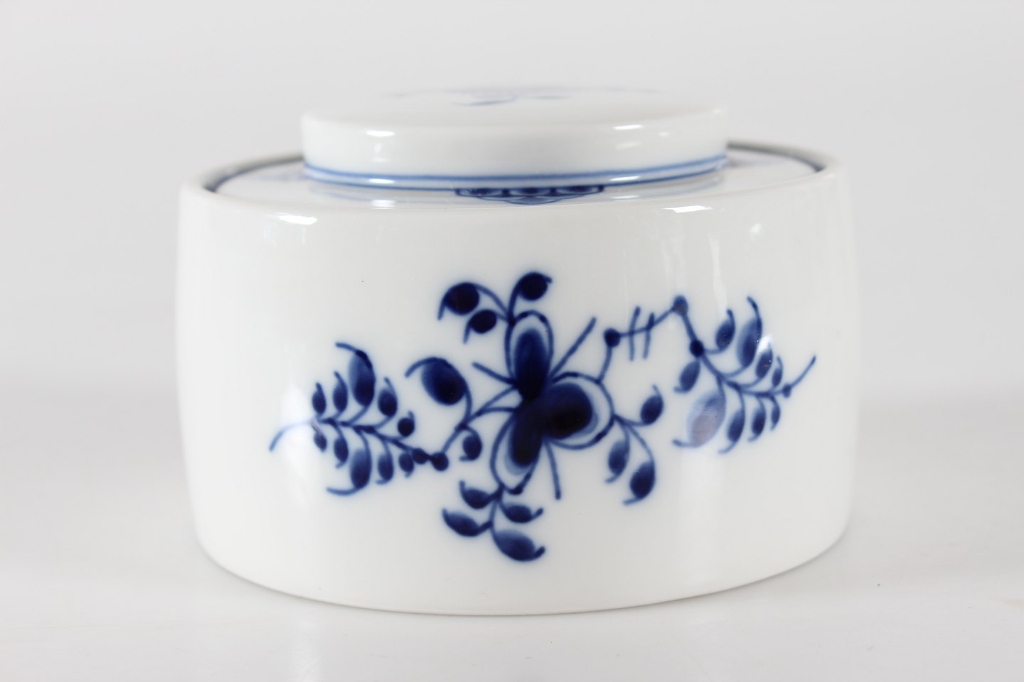 Royal Copenhagen Blue Fluted Plain Lidded tobacco jar no. 1/5024 With stamp from the period 1963-74 Diameter 10.5 cm Height 6.5 cm Factory 1. Very nice condition without chips or cracks
