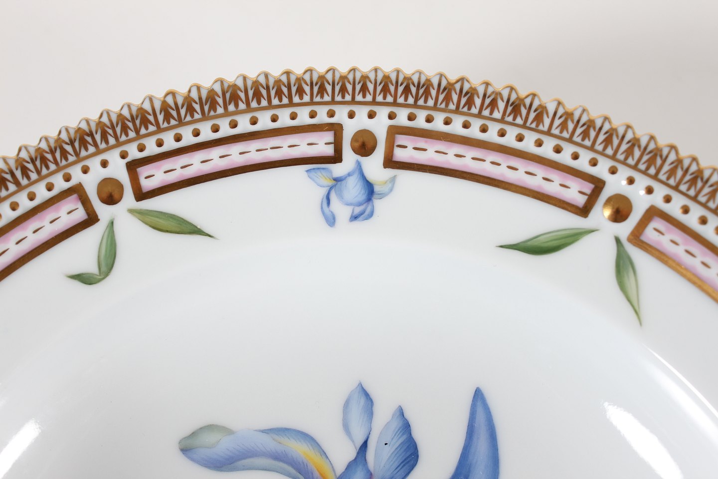 Royal Copenhagen Flora Danica Deep plate no. 20/604 with jagged rim Decorated with flower "Iris spuria L." With stamp from the period 2005-2009 Diameter 22 cm Mint condition - factory 1