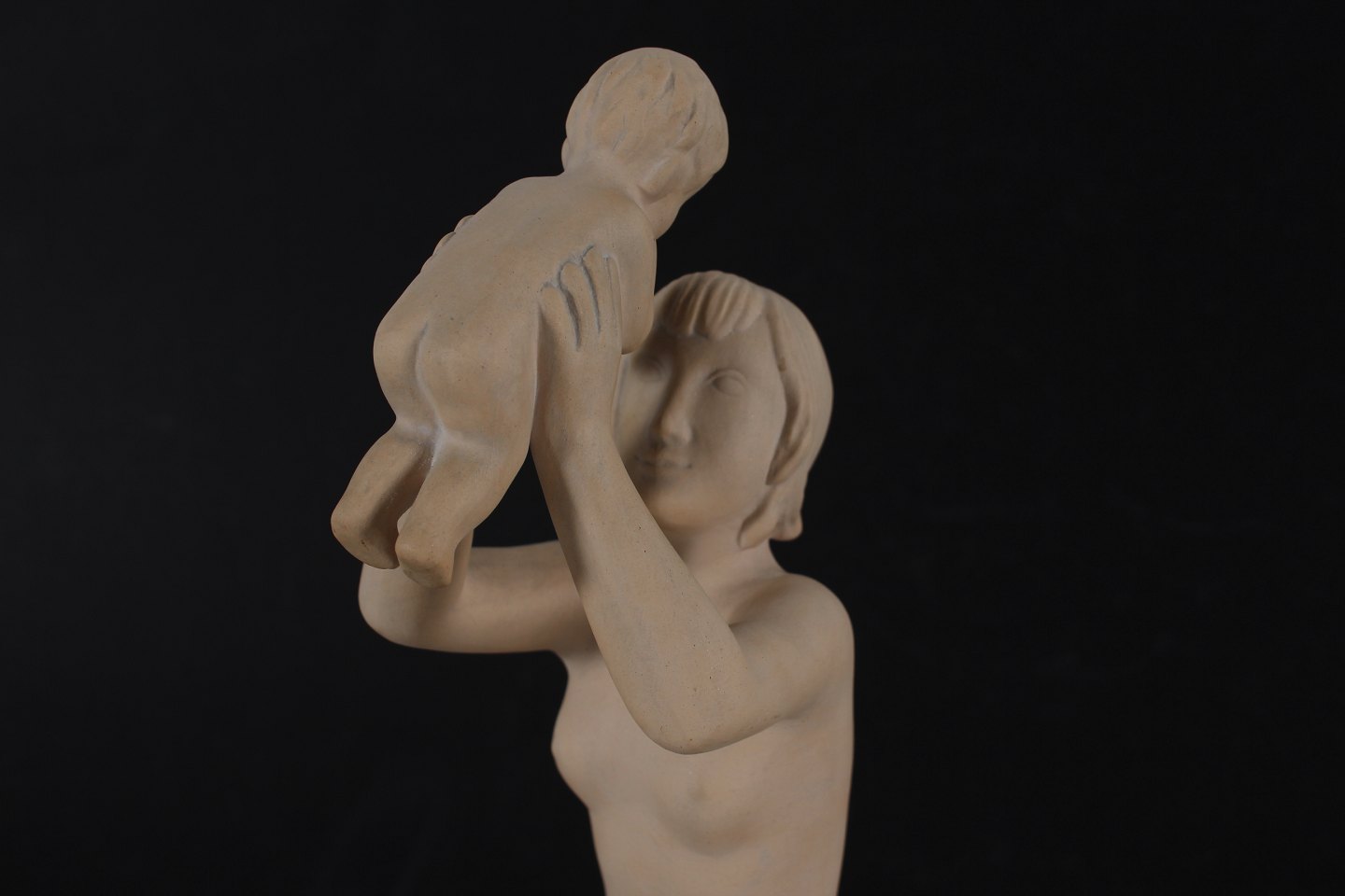 Niels Tvede and P. Ipsens Enke Figurine of mother lifting up her child, unglazed terracotta no. 860 Sign: P. Ipsens Enke + 860 + Denmark + N. Tvede Height 32 cm Nice condition no chips, cracks or repair