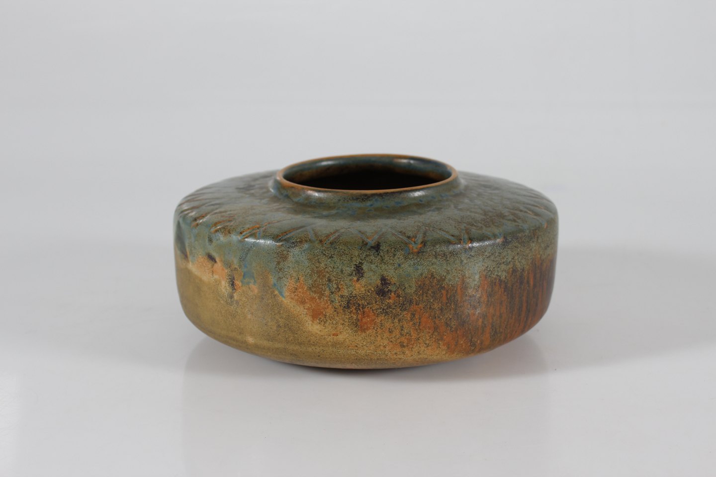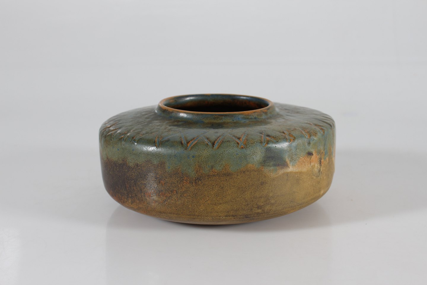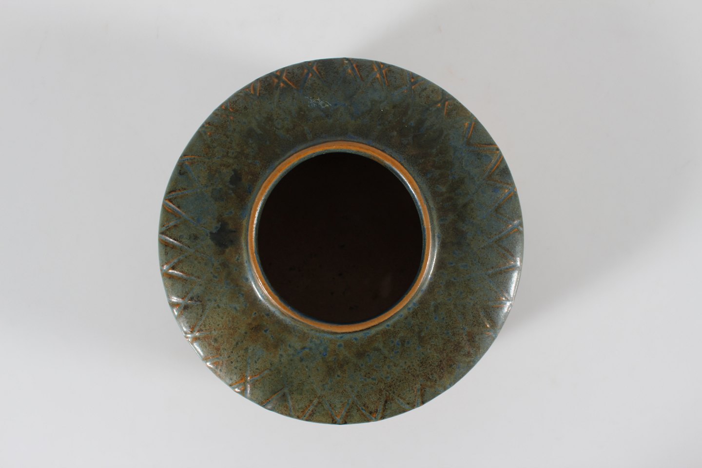 Ceramic vase with incised triangular pattern