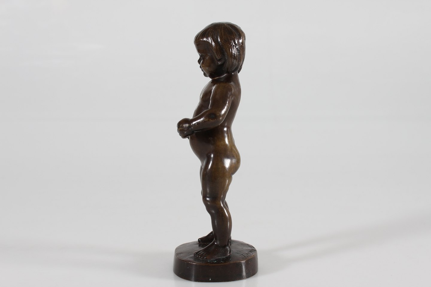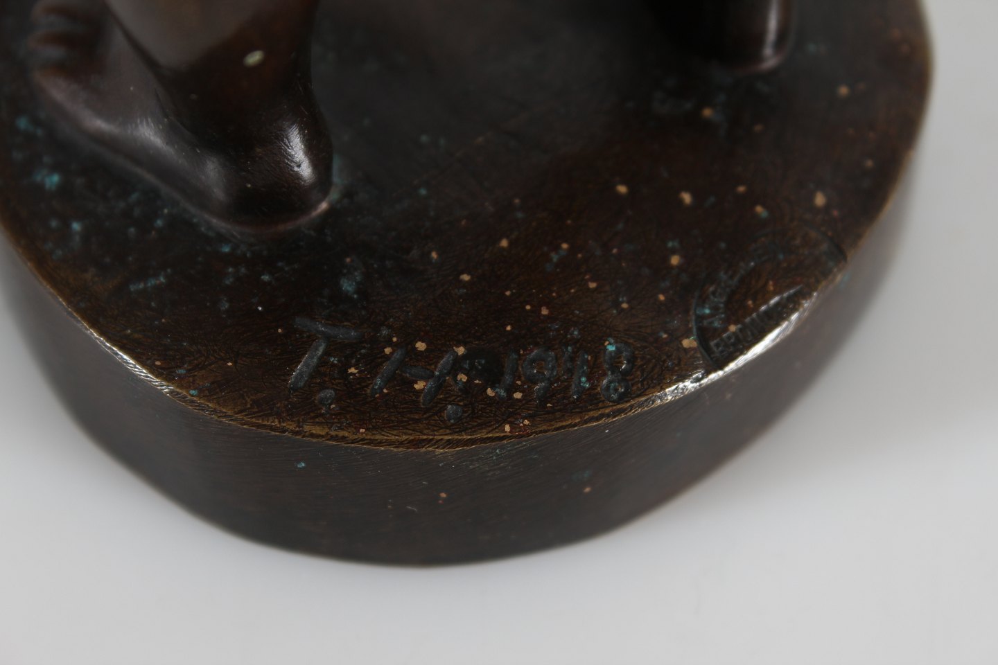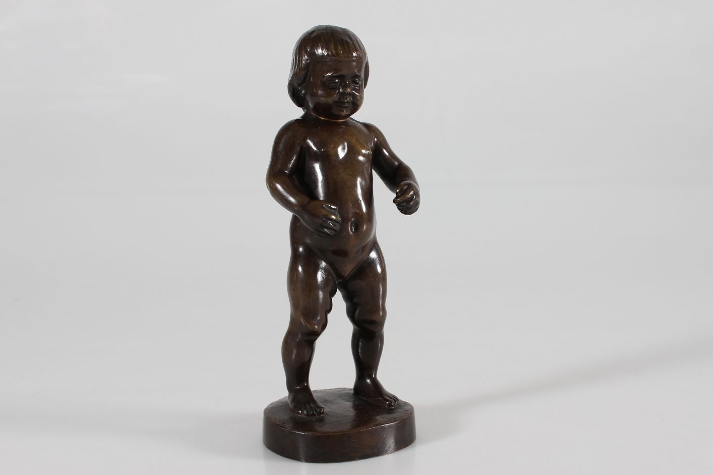 Bronze figurine Robust boy figurine made of bronze by August E. Jensen bronze foundry in Copenhagen Sign. T.H. 1918 Height 19.5 Nice condition with good patina