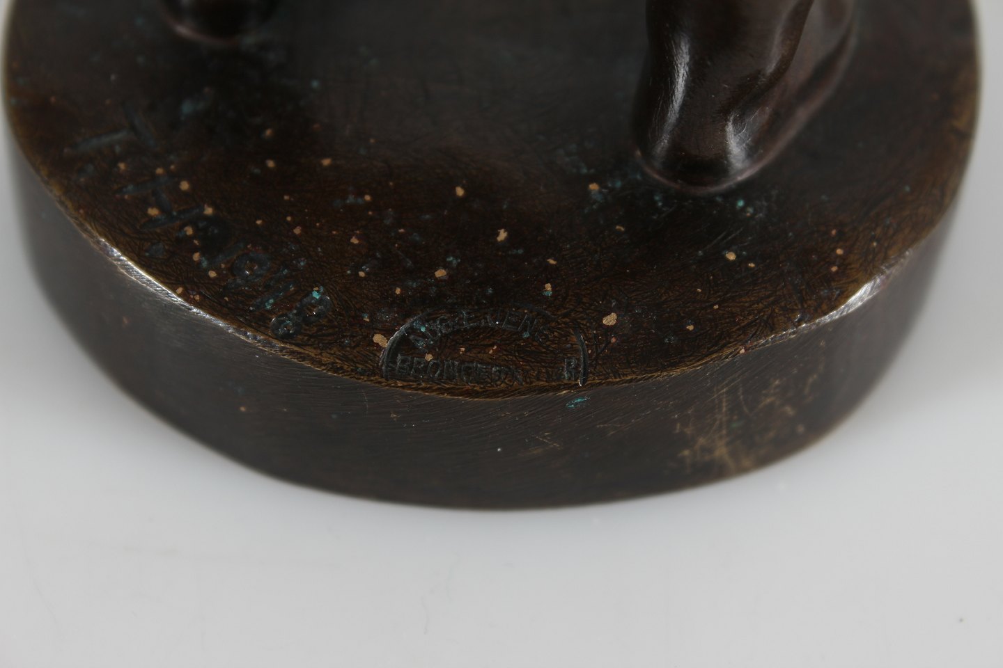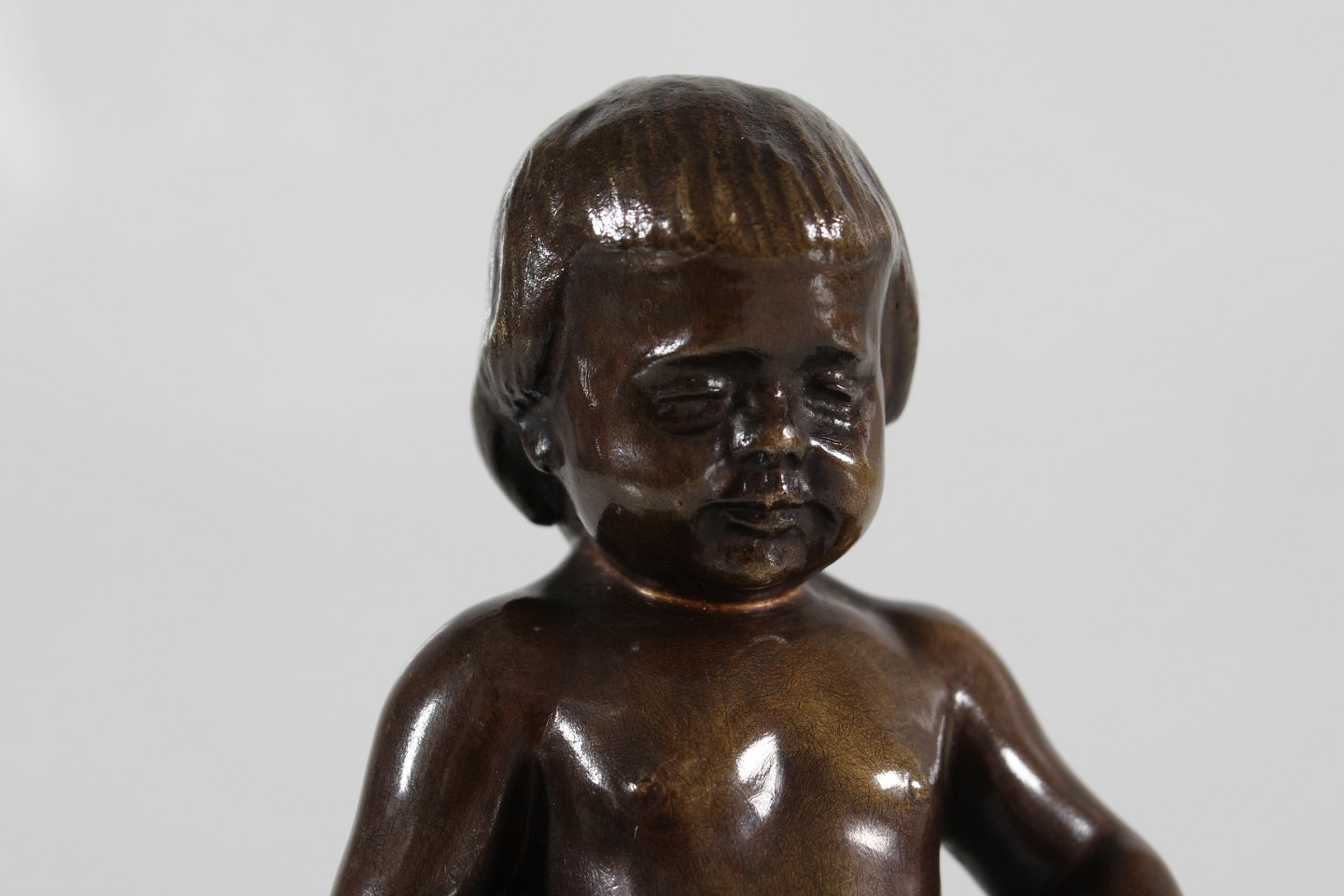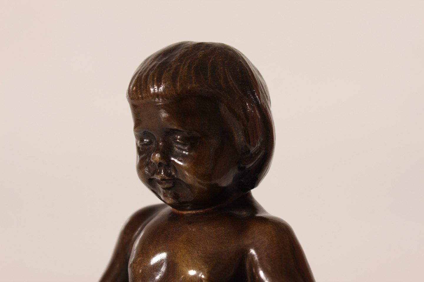 Bronze figurine Robust boy figurine made of bronze by August E. Jensen bronze foundry in Copenhagen Sign. T.H. 1918 Height 19.5 Nice condition with good patina