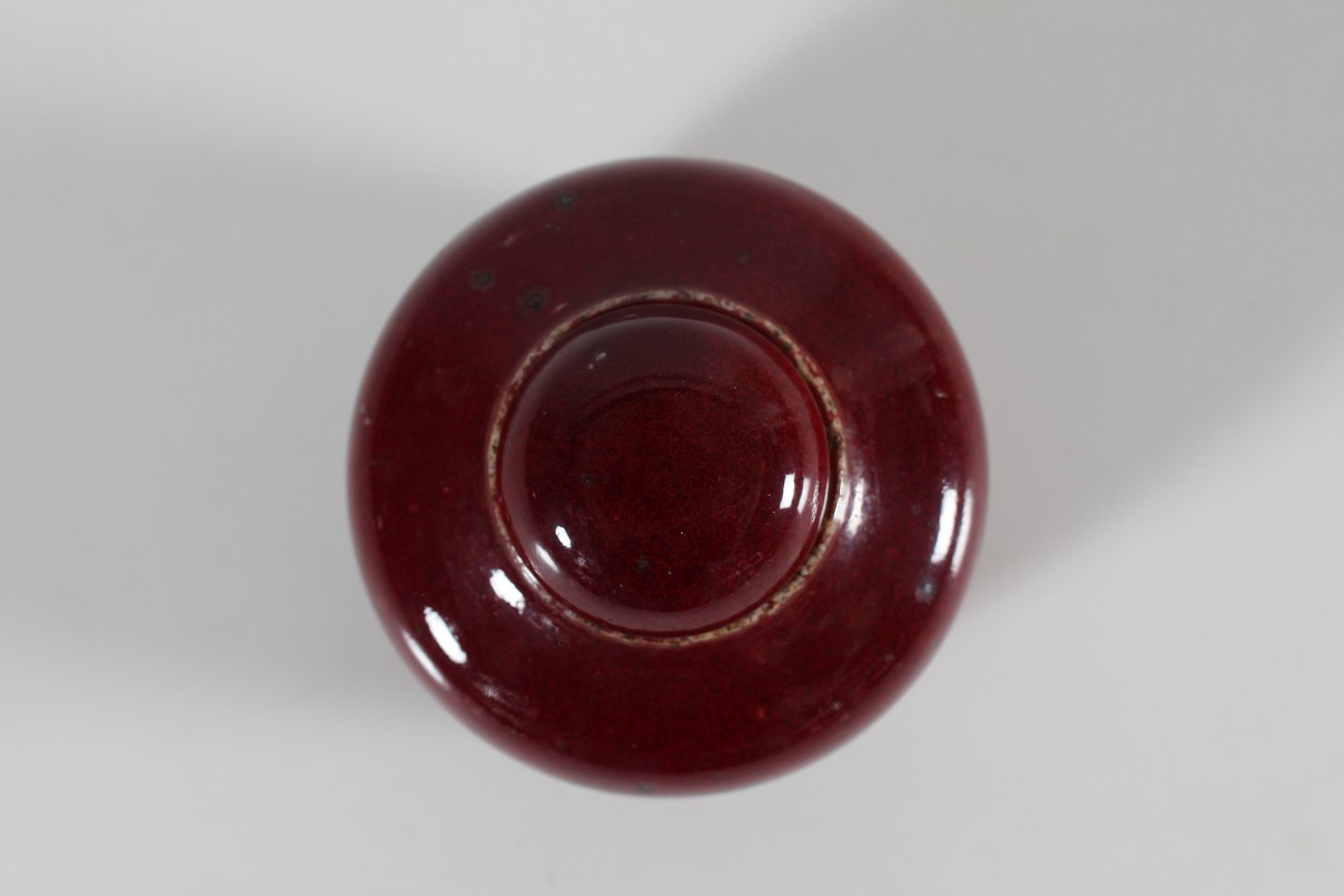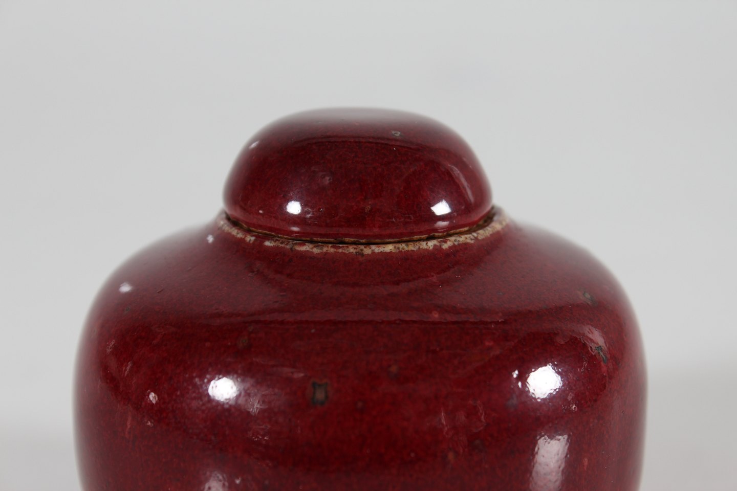 Bing & Grøndahl Valdemar Pedersen (1906-81) Rare small lidded jar of stoneware with glossy oxblood glaze With stamp from the 1950s Height 8 cm Diameter 9 cm Mint condition - 1. quality