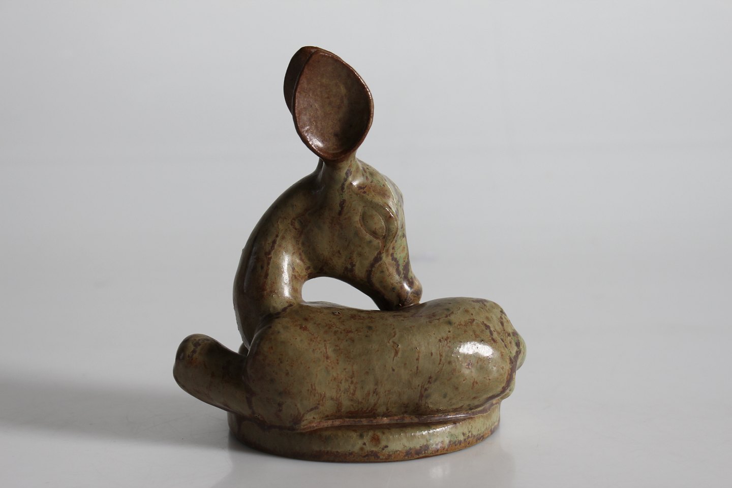 Arne Bang (1901-1983) Figurine of a deer model no. 11 made of stoneware with light brown glaze Sign AB for Arne Bang Length 16 cm Mint condition