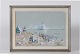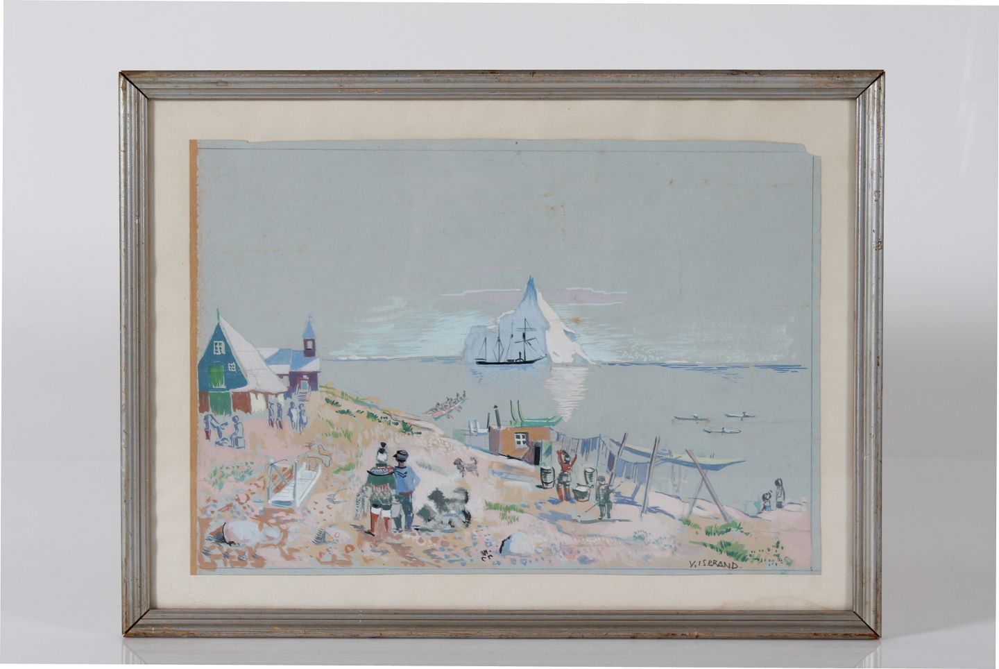Victor Isbrand (1897-1989) Watercolor with motif from Greenland Bredde 40 cm Højde 30 cm Sign: V. Isbrand Silver colour wood frame Nice vintage condition