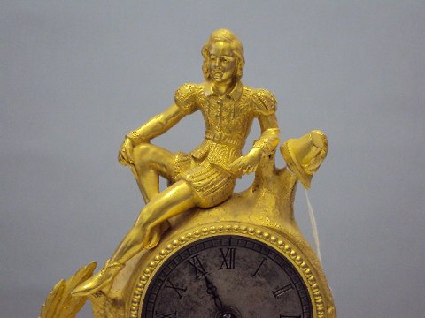 French vintage mantel clock made of gilded metal. From middle of the 18th century