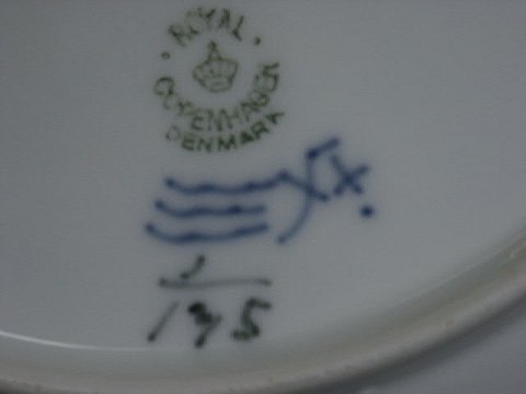 Royal Copenhagen Musselmalet Riflet Stor middagstallerken nr. 1/175 Diameter ca. 25 cm Fin stand uden skår eller revner