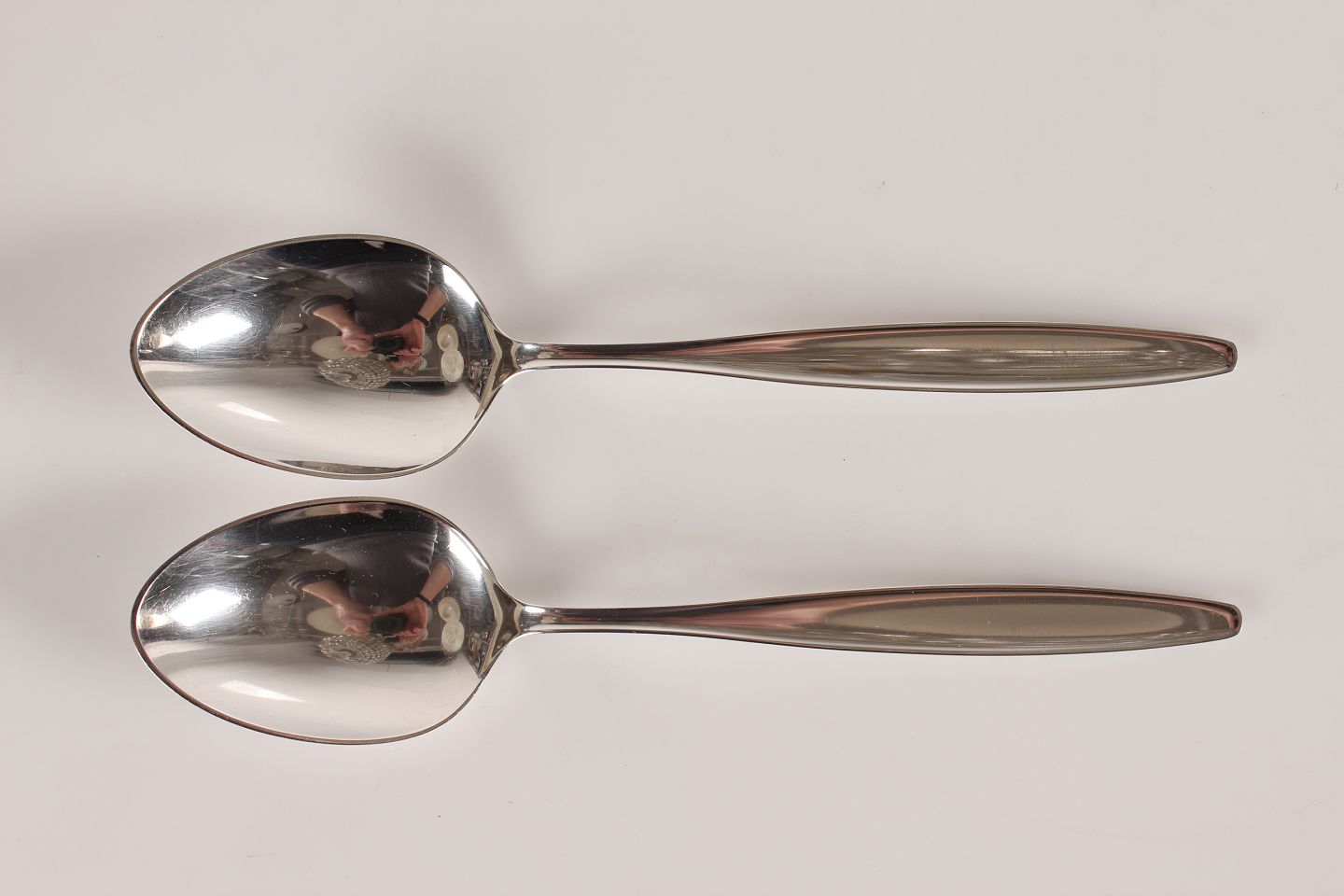 Georg Jensen Silver Cypres cutlery made of sterling silver after design by Tias Eckhoff in 1952 Dessert Spoons Length 17,8 cm Nice vintage condition