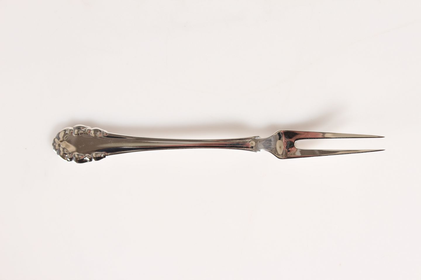 Georg Jensen Sølvsmedie Liljekonval bestik af 830 sølv tegnet af Georg Jensen i 1913 Pålægsgaffel Længde 16 cm Rigtig fin stand