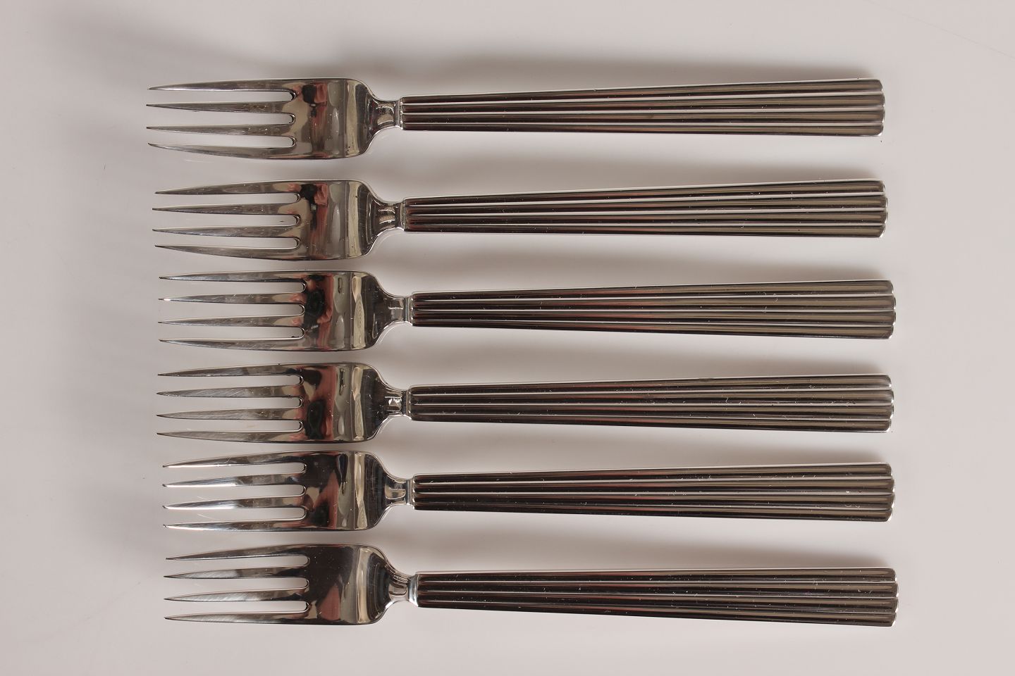 Georg Jensen Sølvsmedie Bernadotte bestik af sterling sølv tegnet af Sigvard Bernadotte i 1939 Frokostgafler Længde 17,8 cm Med stempel fra perioden efter 1945 Rigtig fin stand