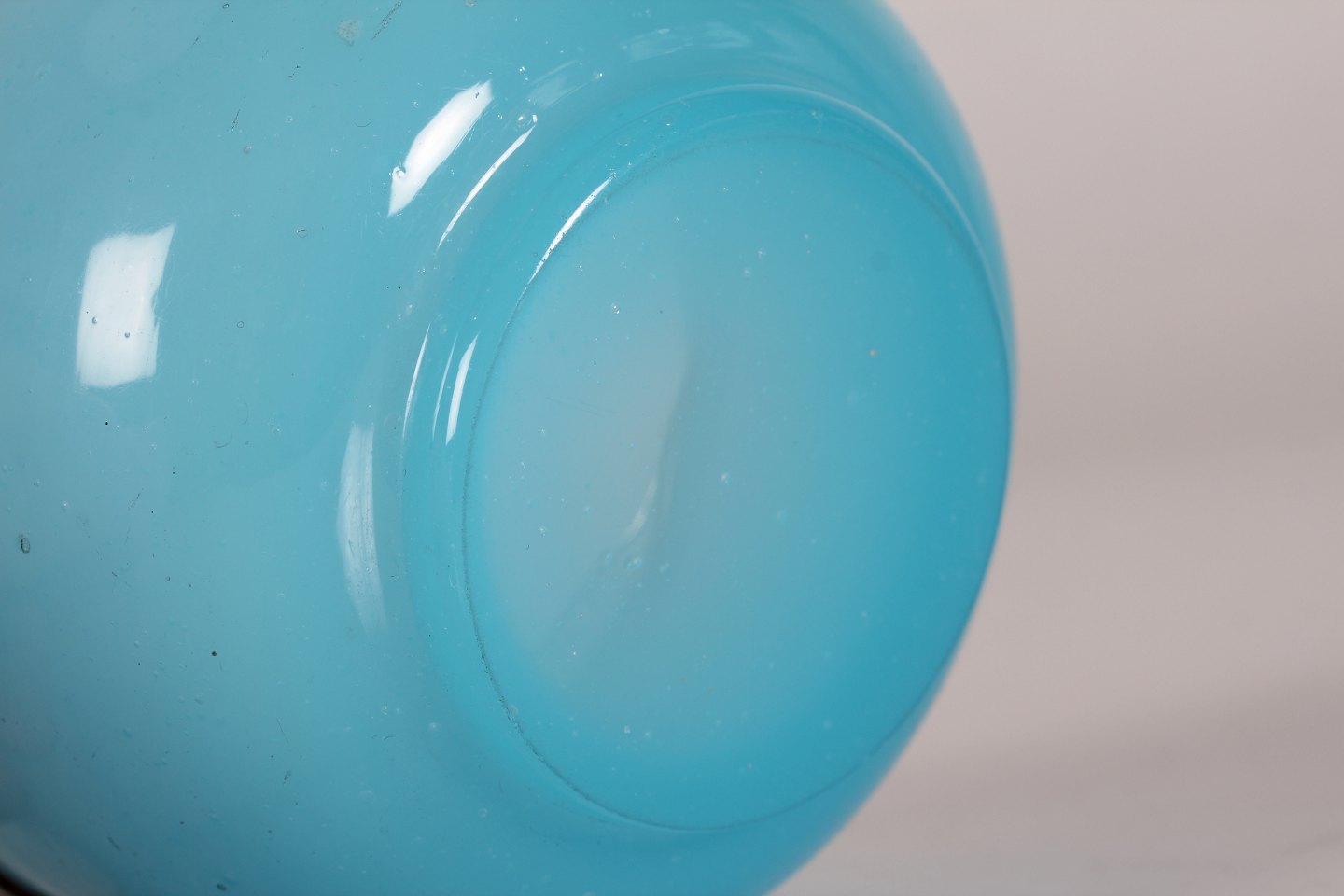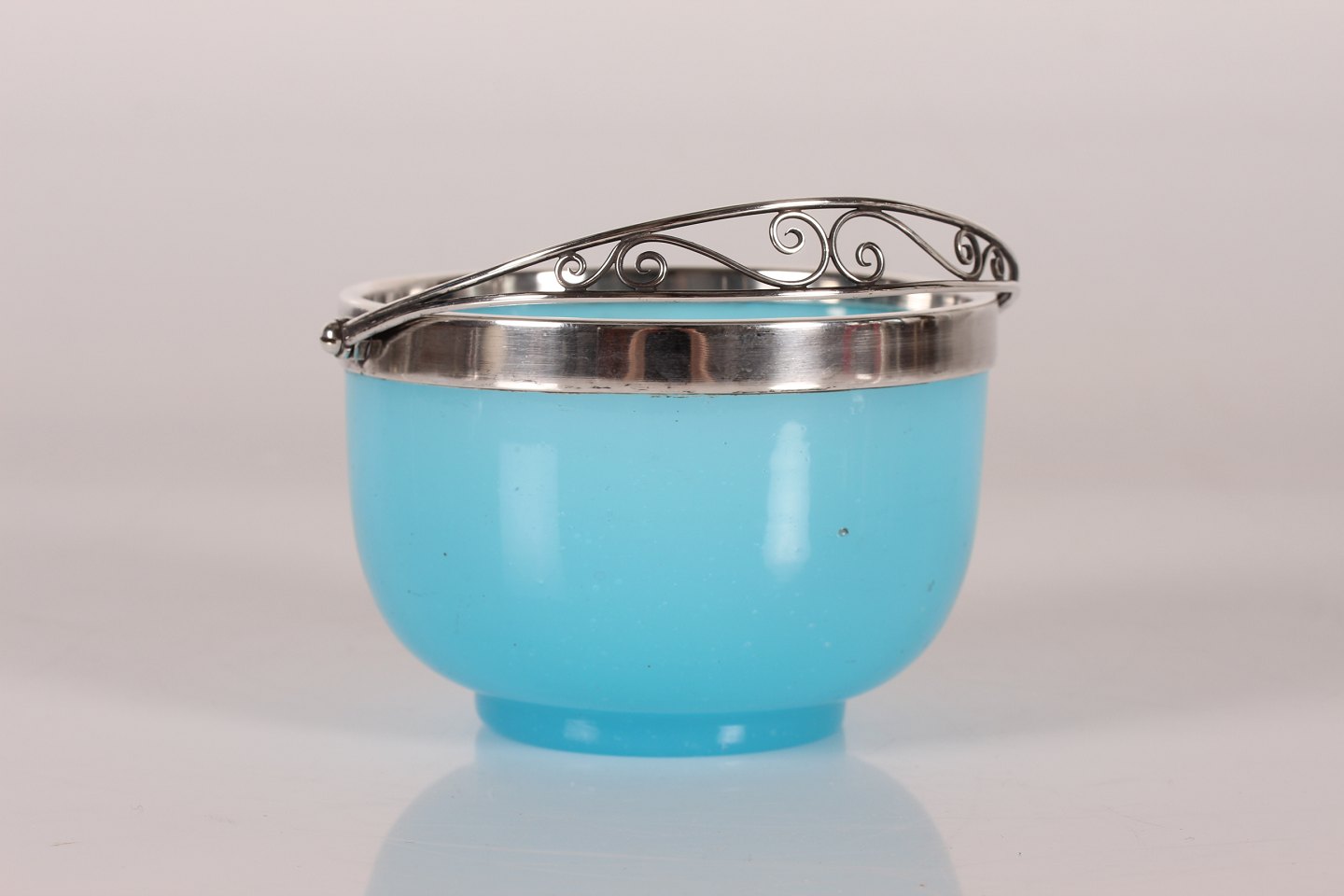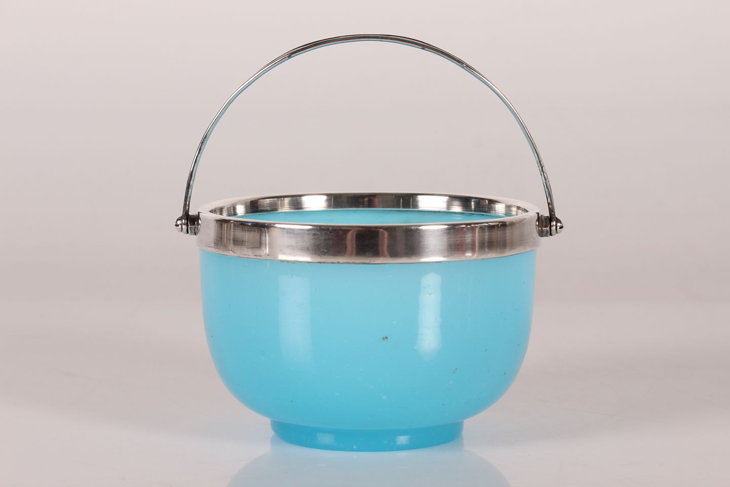 Old sugar bowl Made in the 19th century of light blue glass Height incl. handle 13.5 cm Diameter 11.5 cm Nice condition - no chips or cracks