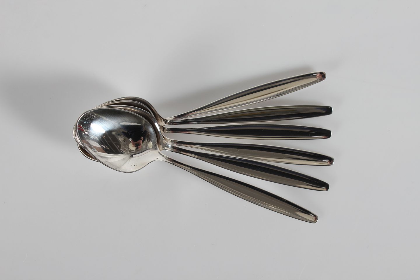 Georg Jensen Sølvsmedie Cypres bestik af sterling sølv tegnet af Tias Eckhoff i 1952 Barneskeer Længde 15,2 cm Rigtig fin stand