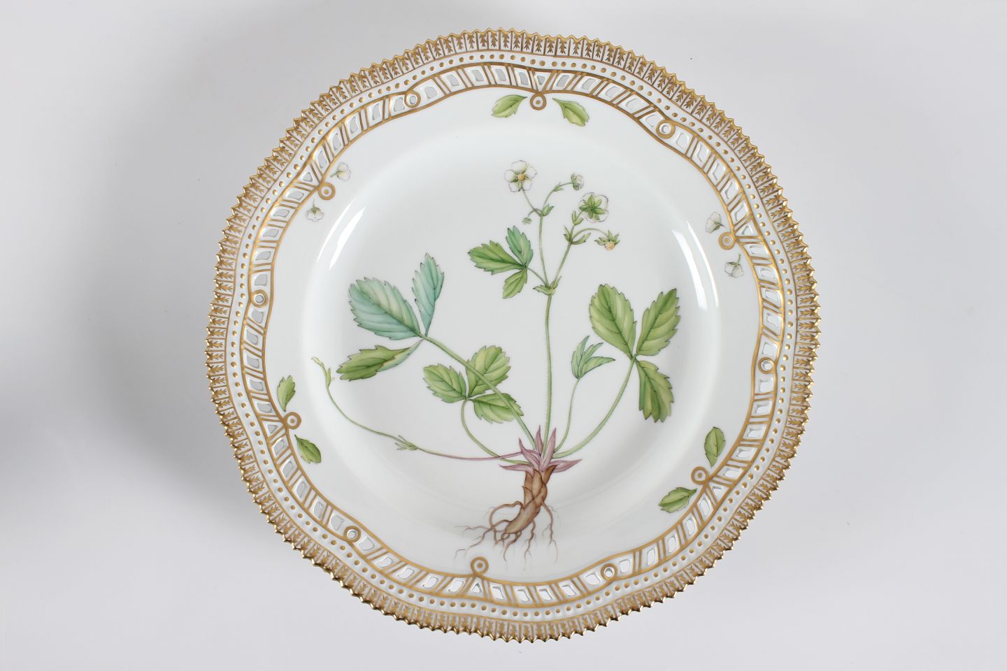 Royal Copenhagen Flora Danica Middagstallerken med gennembrudt og takket kant model nr. 3553 Dekoreret med blomst "Fragaua L." Diameter 25 cm Fin fejlfri 1. sortering