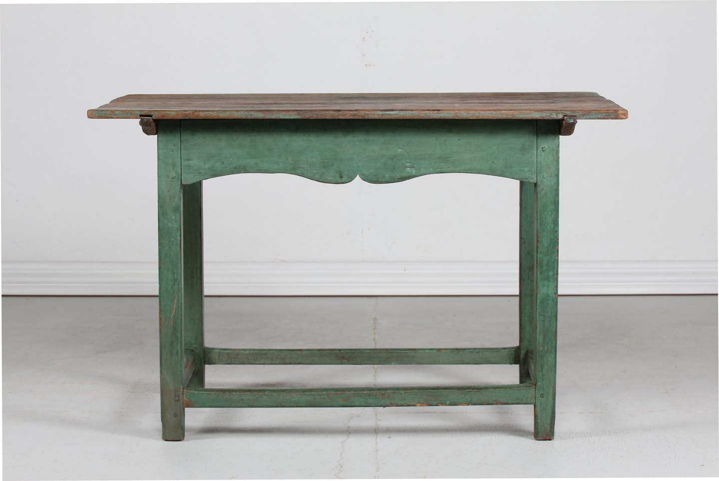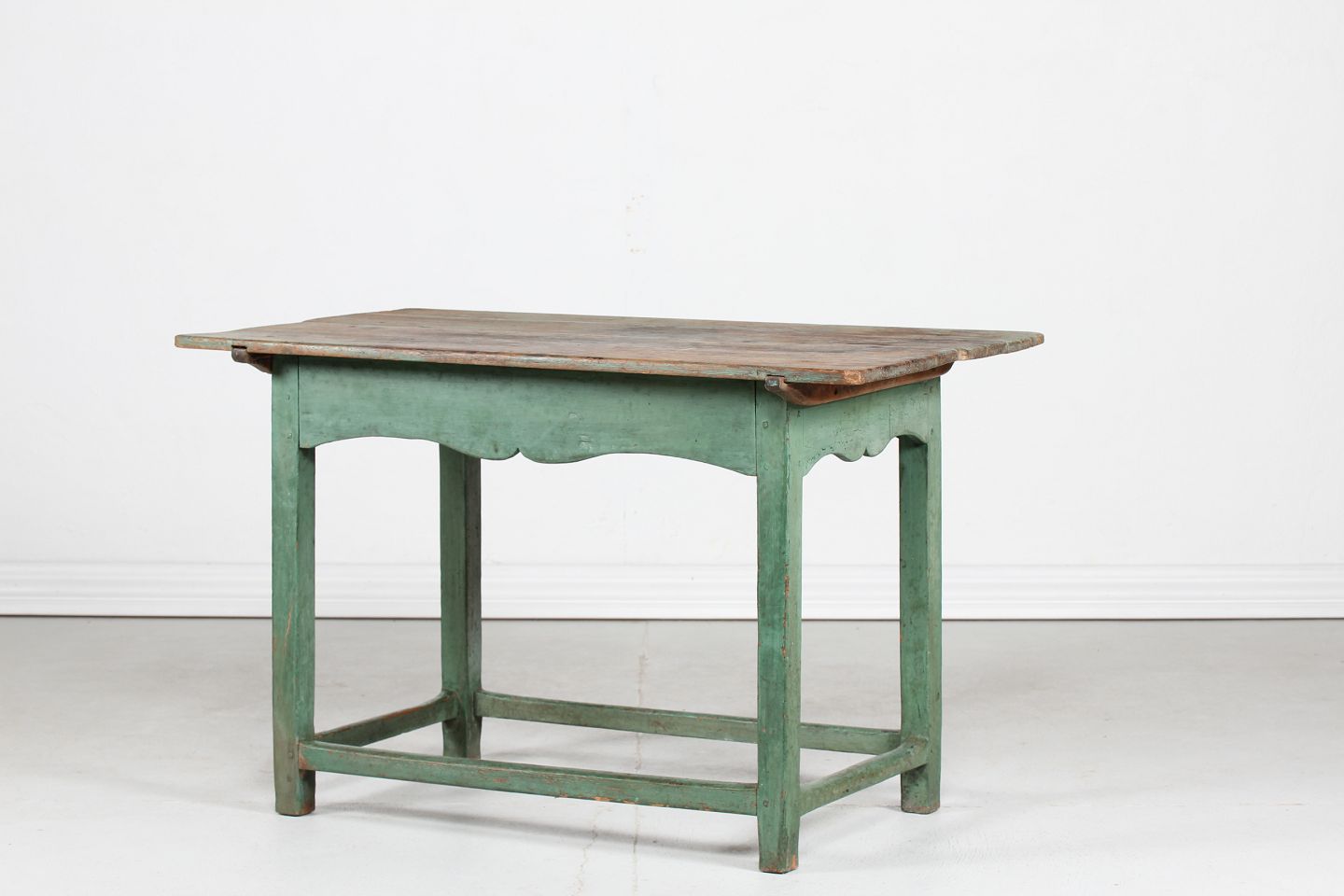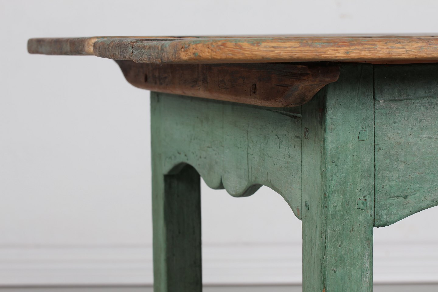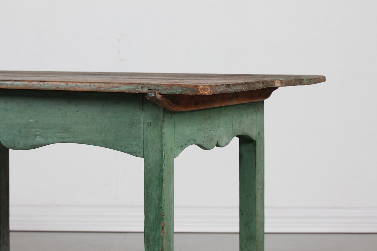 Antique Table Scandinavian Antique Table of pine wood with green colored frame and top without paint Length 120 cm Depth 70 cm Height 77 cm Nice antique condition with good patina