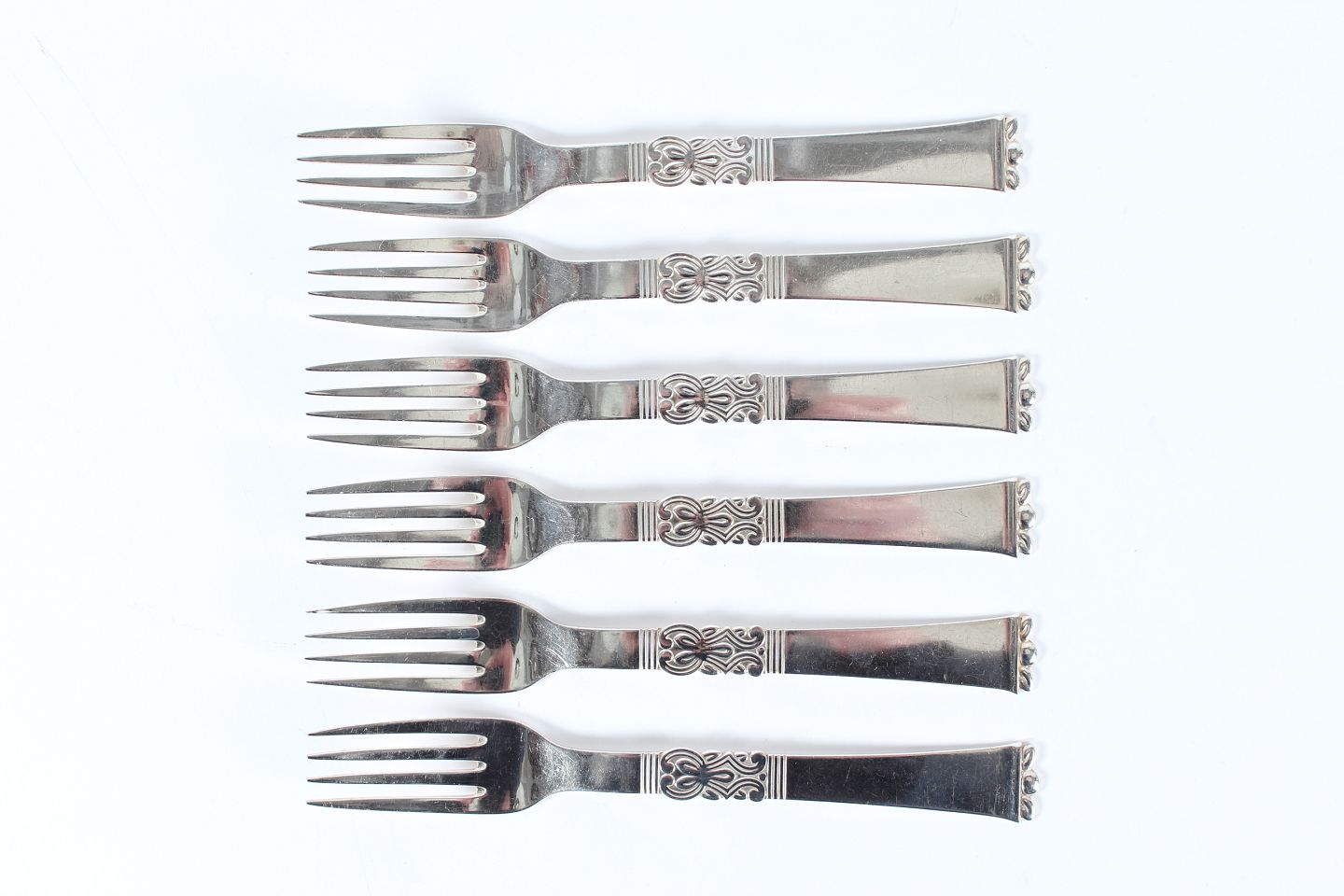 Rigsmønstret Sølvbestik Fremstillet af ægte 3 tårnet sølv fra Frigast Sølv Frokostgafler Længde 17,5 cm Fin stand uden indgravering Kontakt os venligst hvis du er interesseret i mere end 1 stk.