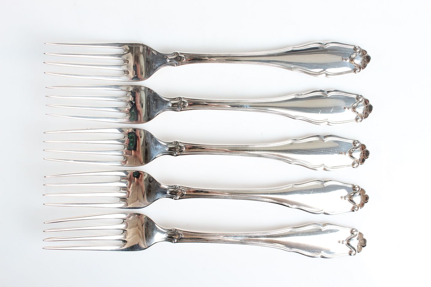 Charlottenborg Sølvbestik Charlottenborg tretårnet sølvbestik 830s fremstillet af Svend Toxværds Sølvsmedie A/S Middagsgafler Længde 20,5 cm Fin stand uden gravering