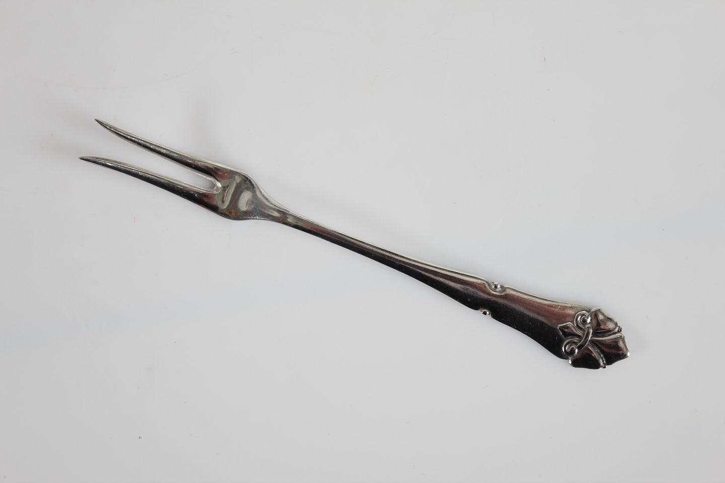Fransk Lilje Sølvbestik Pålægsgaffel fremstillet af ægte 3 tårnet sølv Længde 14,5 cm Fin stand uden monogram