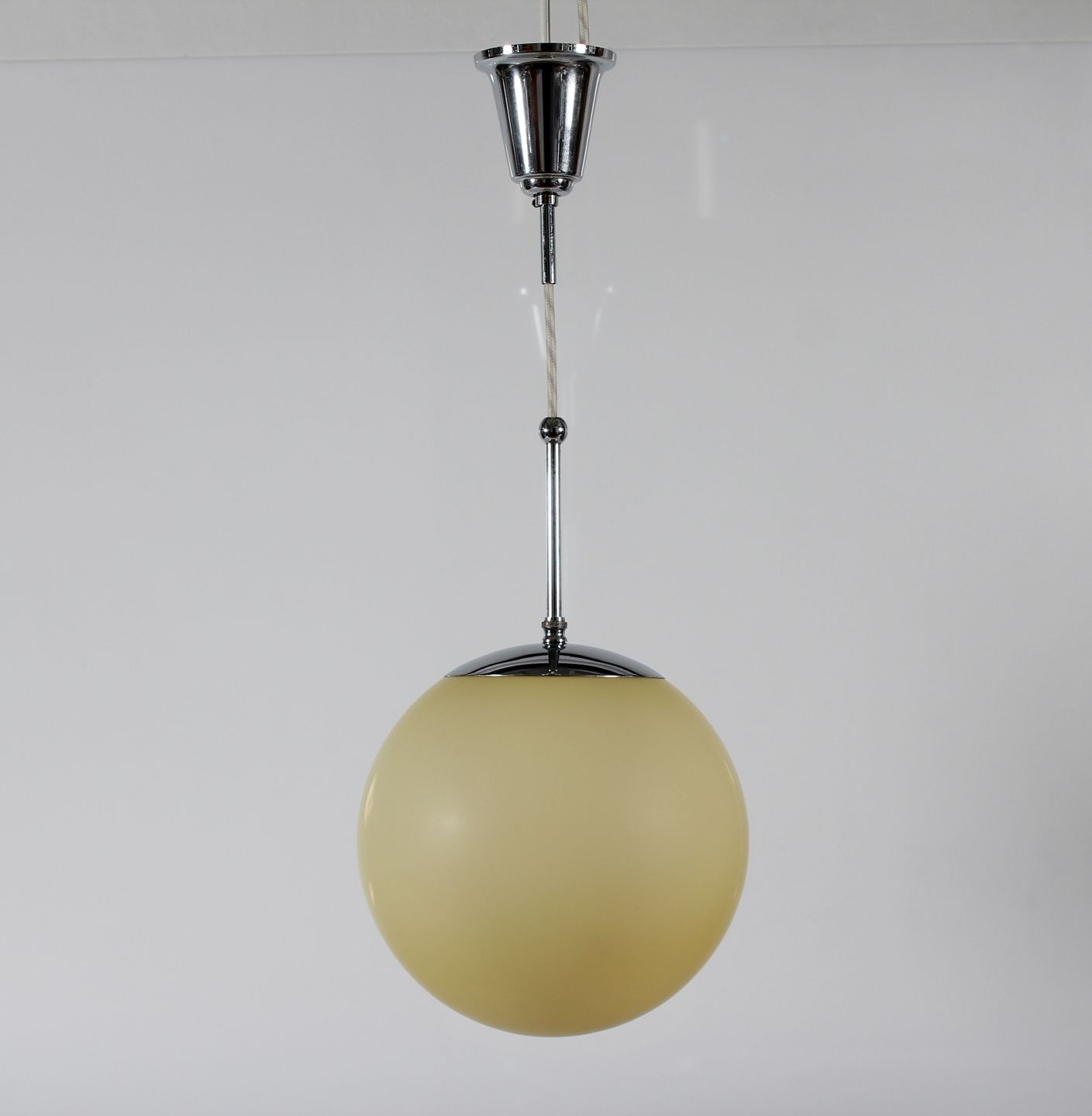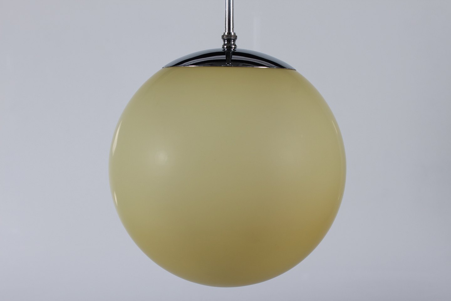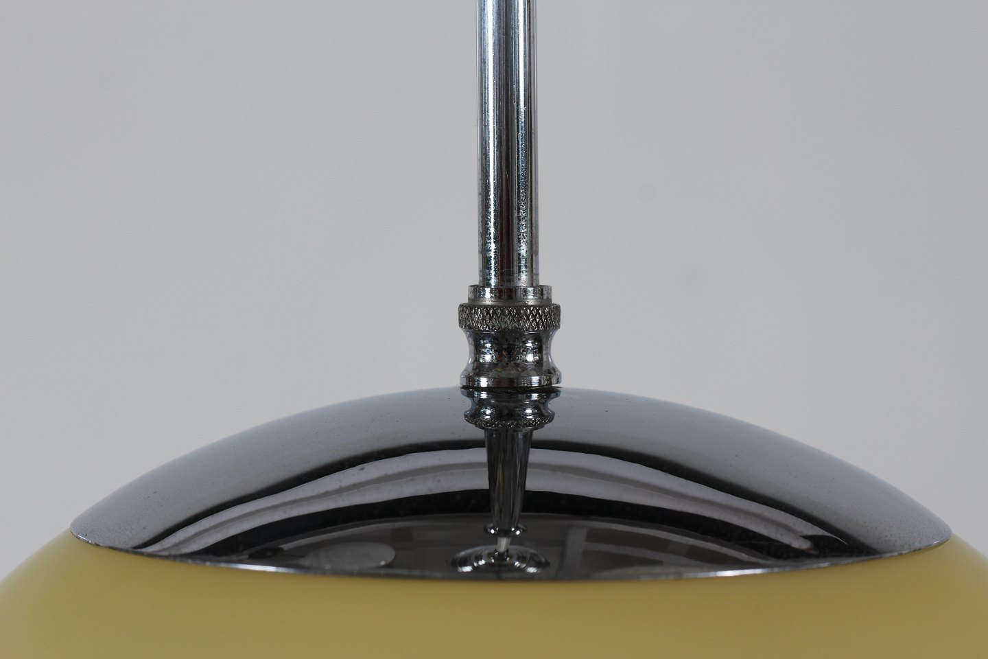 Fremstillet af af forkromet metal med kuppel af lyst gult glas.