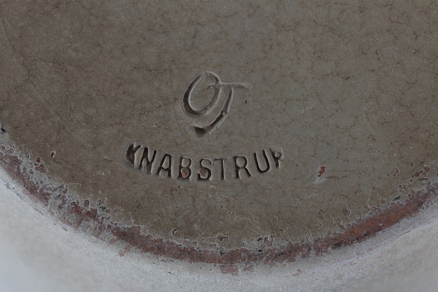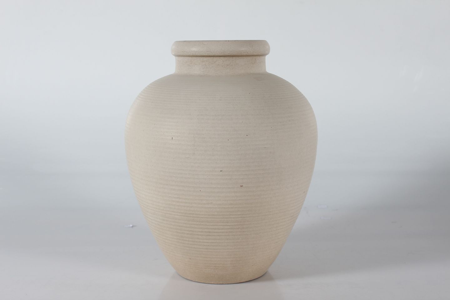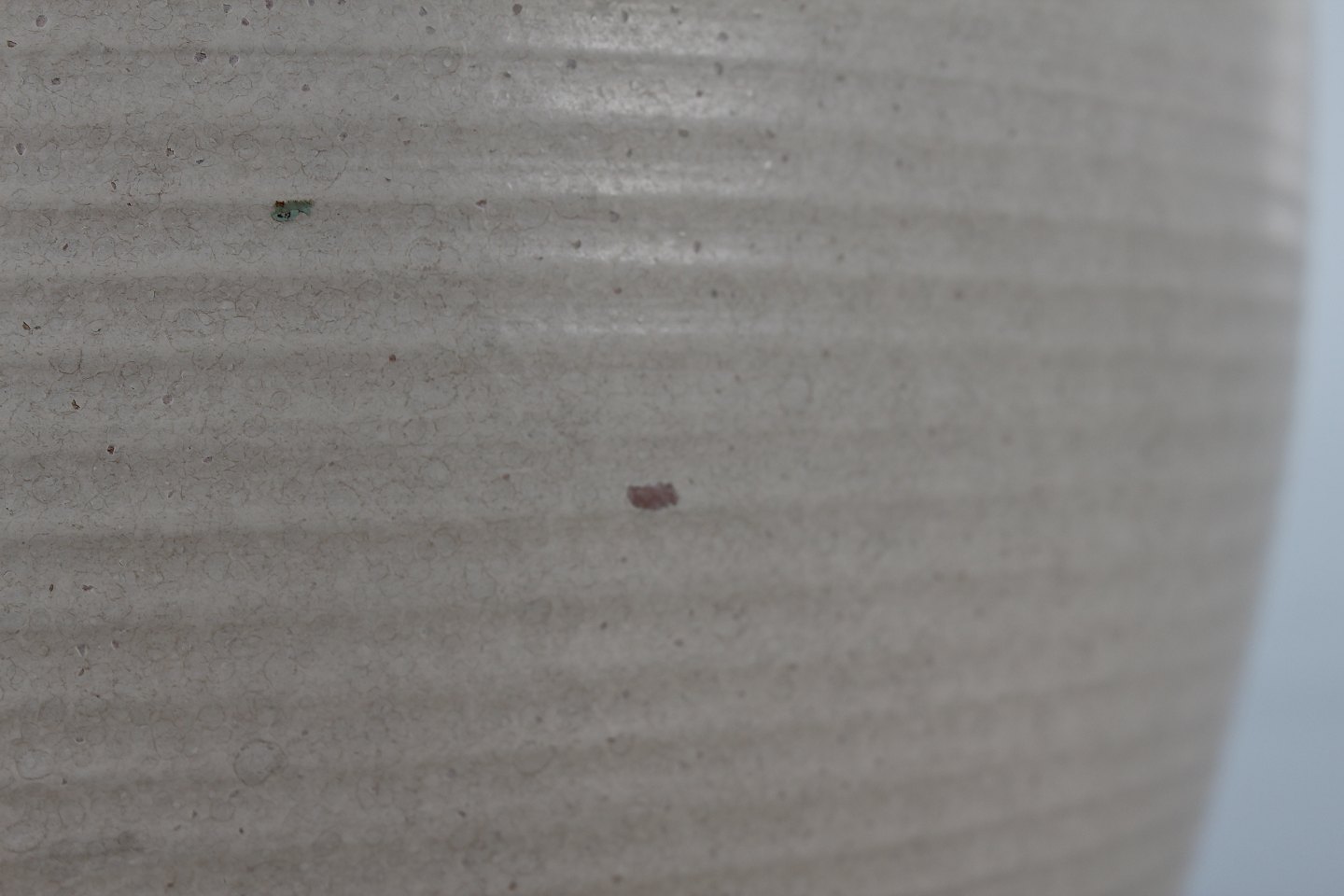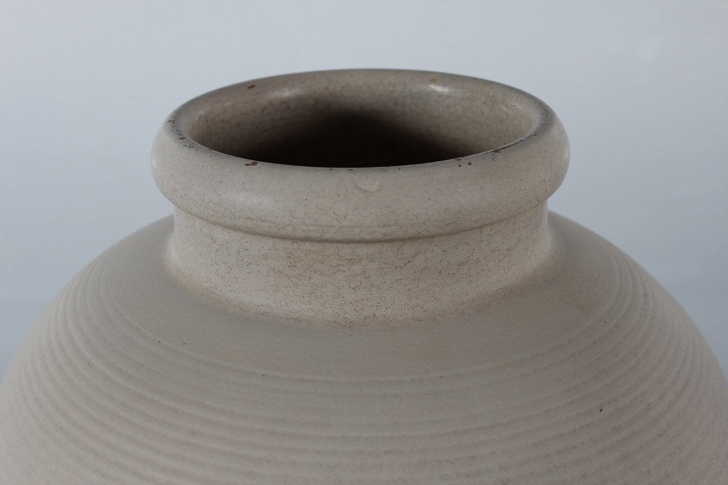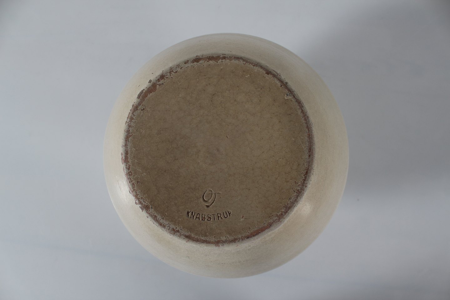 Knabstrup Pottery Large ripple floor vase with sand colored matte glaze sign. OJ + Knabstrup Height 34 cm Diameter 26 cm Nice condition - see photos of a few small chips