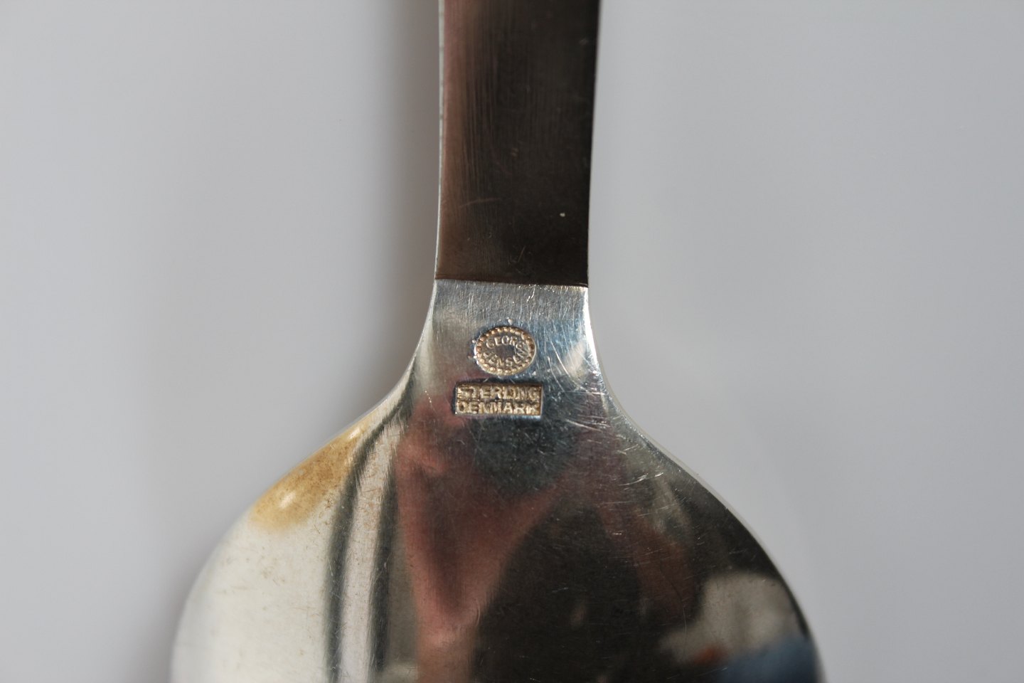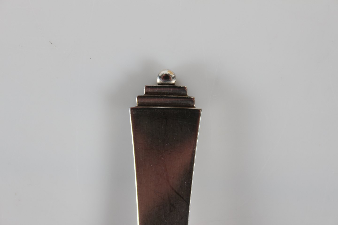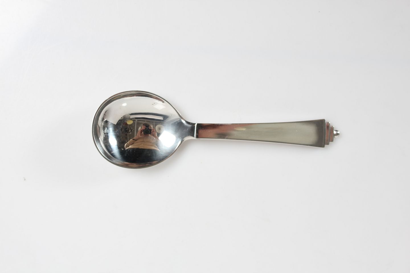 Georg Jensen sølvsmede Pyramidebestik tegnet af Harald Nielsen 1927 Marmeladeske Længde 13,5 cm Fremstillet af sterling sølv med stempel efter 1945 Rigtig fin stand uden monogram