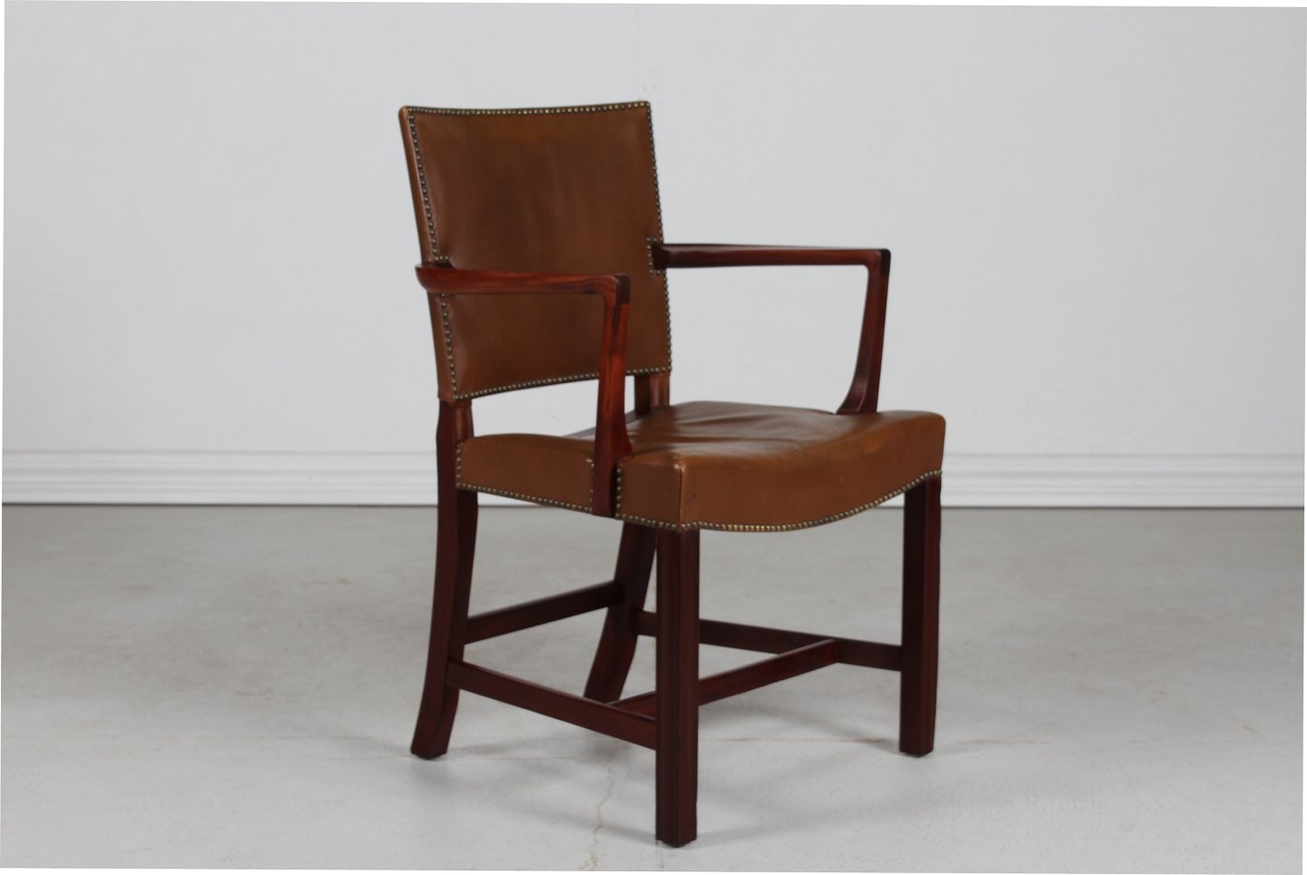 Den røde stol af mahogni med armlæn