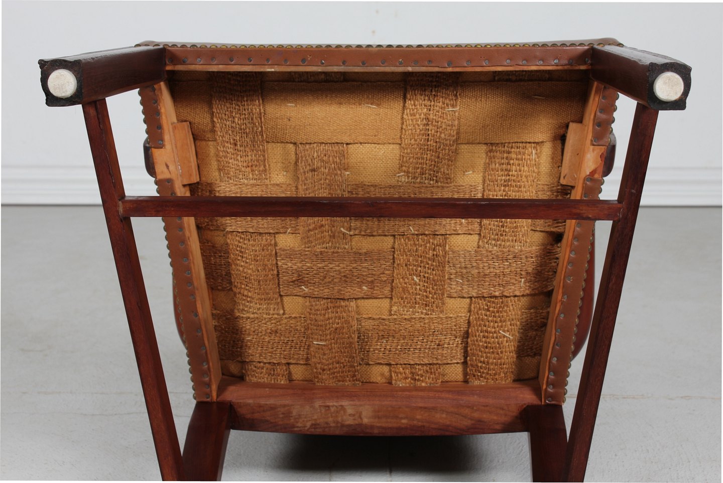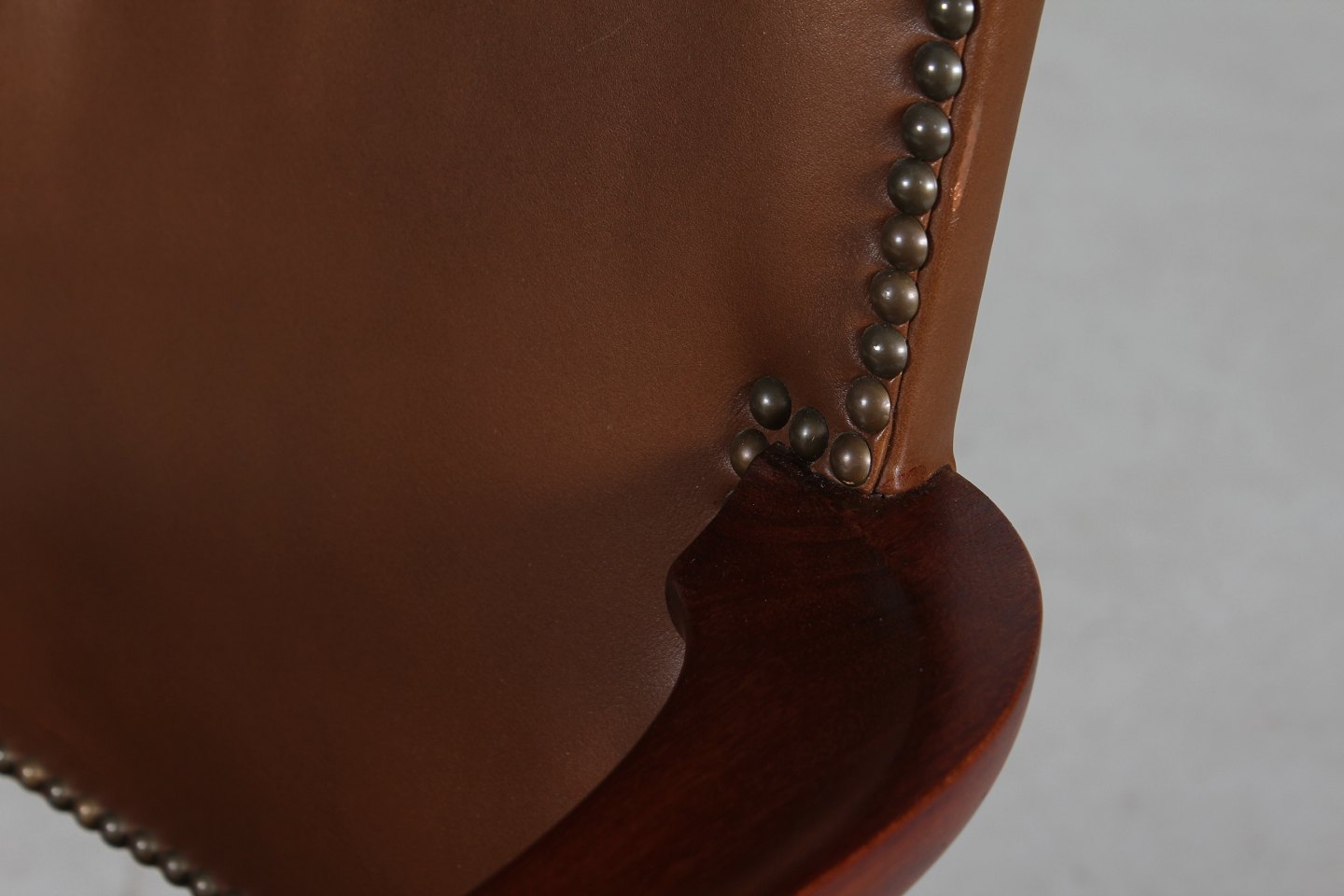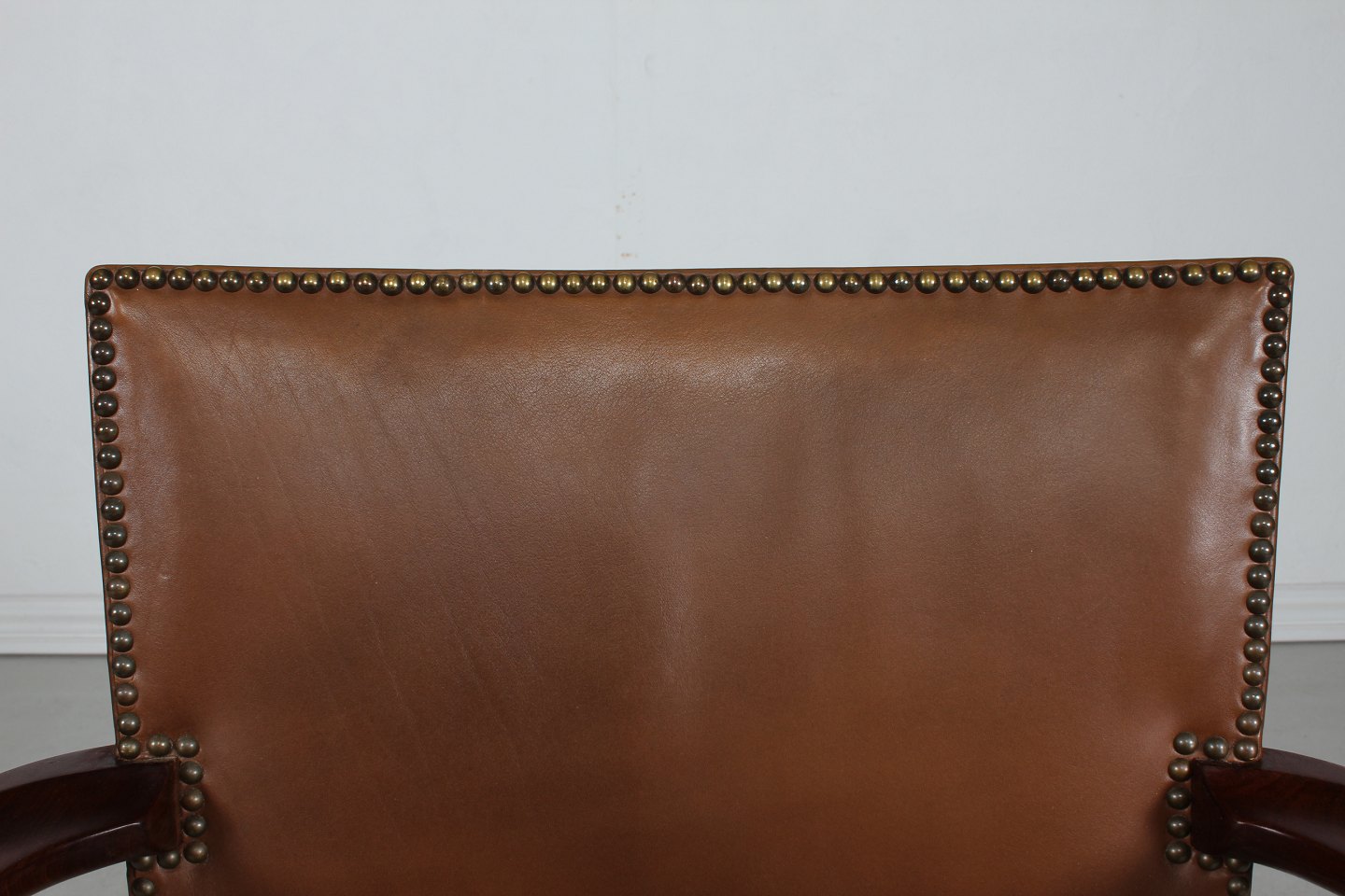 betrukket med brunt patineret sømbeslået læder