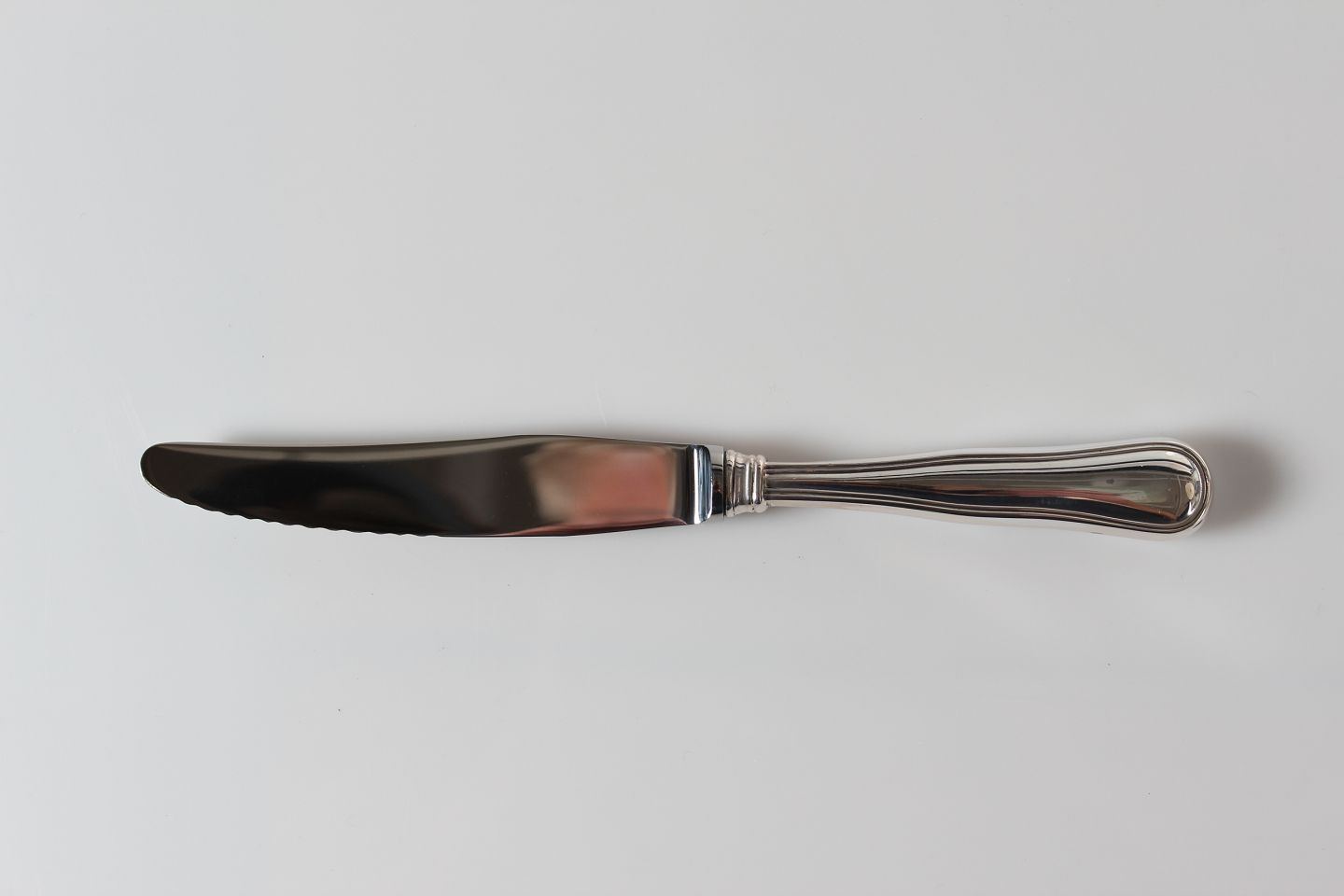 Dobbeltriflet Sølv Bestik H. Danielsen Frokostkniv m/bølgeskær fremstillet af ægte sølv 830s Længde 20,5 cm Fin stand efter almindelig brug uden monogram