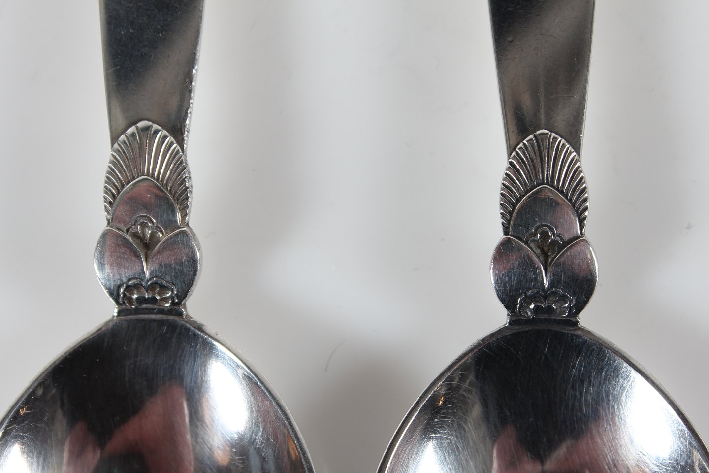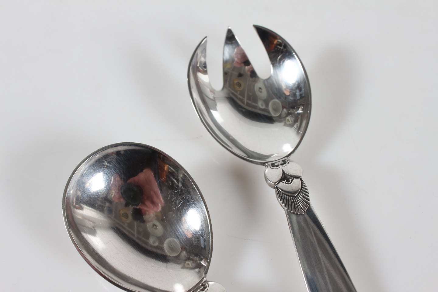 Georg Jensen Sølvsmedie Kaktus bestik af ægte sølv tegnet af Gundorph Albertus i 1930 Lille salatsæt med stempel fra 1931 + 1930-45 Længde 14 cm Fin stand