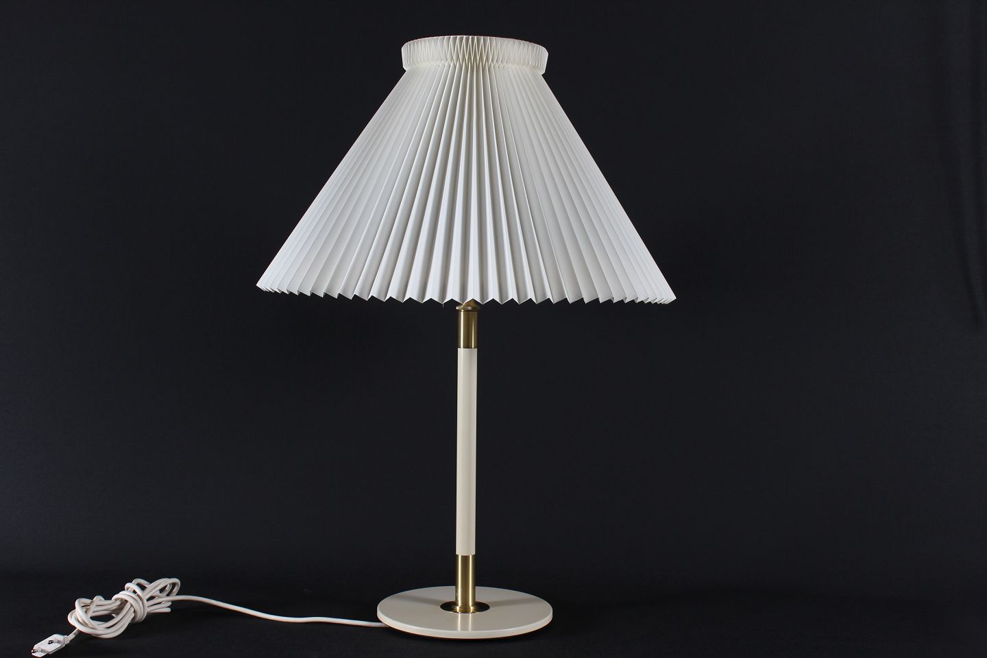 Le Klint + Aage Petersen Table lamp designed by Aage Petersen in 1970. Model 352 with white lacquer and the original shade Adjustable height 65-90 cm Diameter shade ca. 47 cm Nice condition with full function