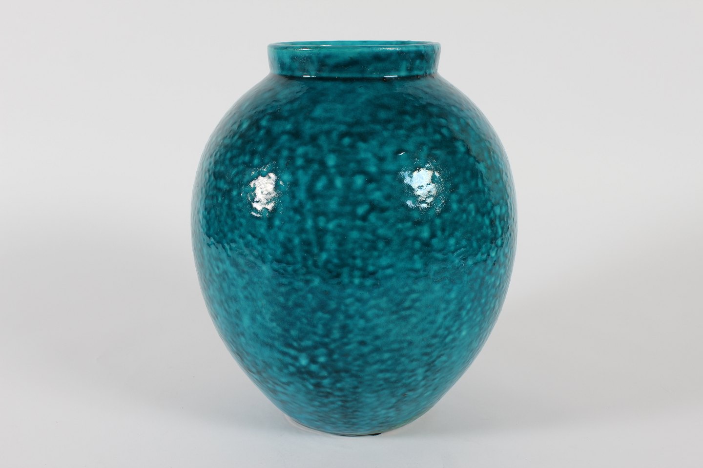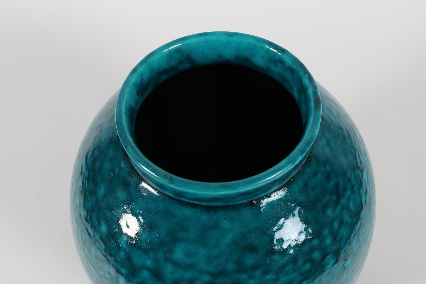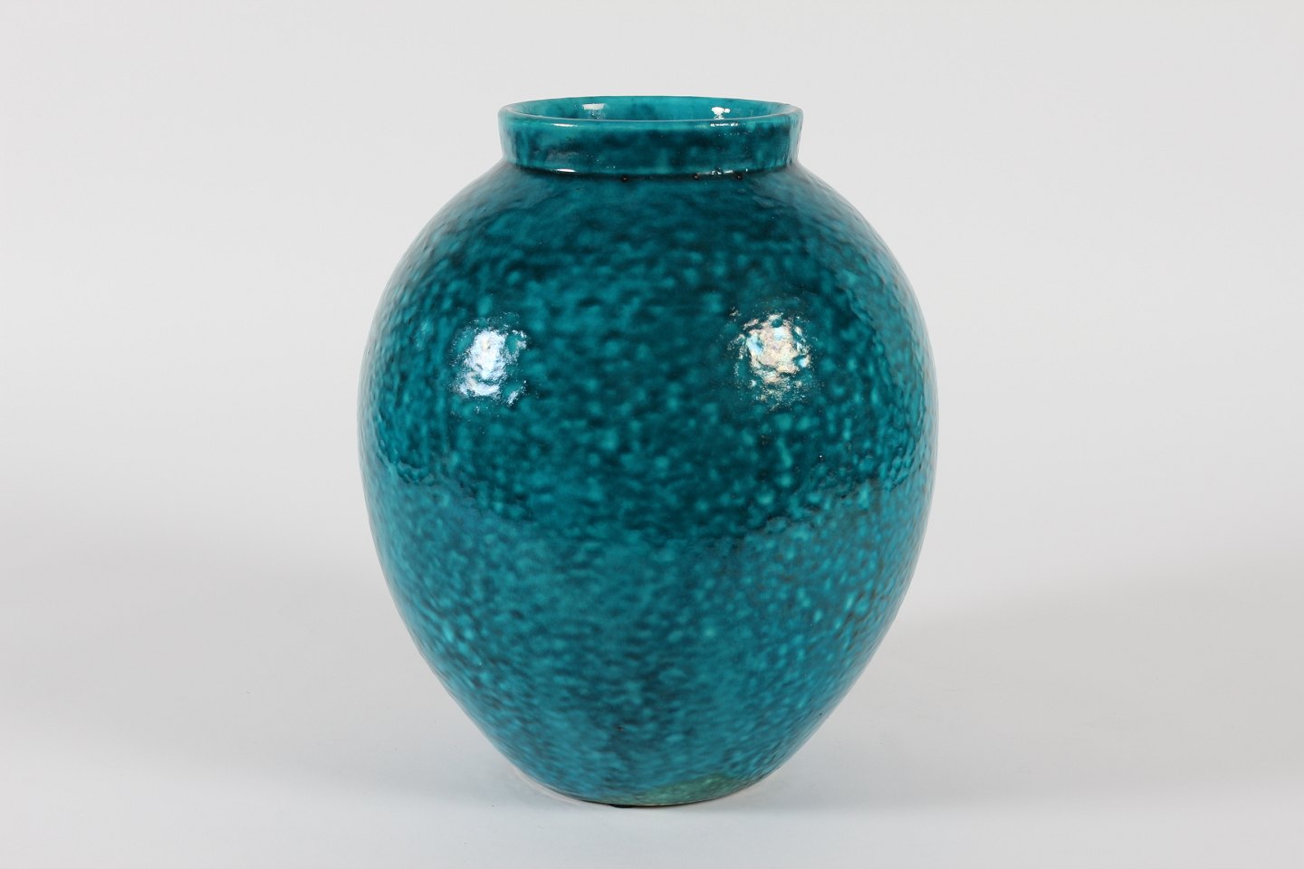 Herman A. Kähler Large Art Deco vase with turquoise glaze Sign. HAK Height 32 cm Diameter 25 cm Nice vintage condition