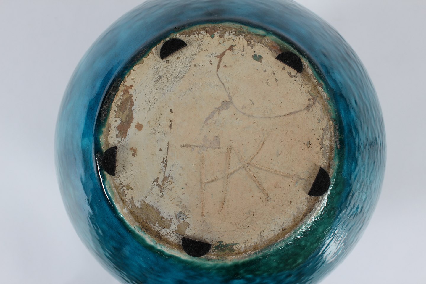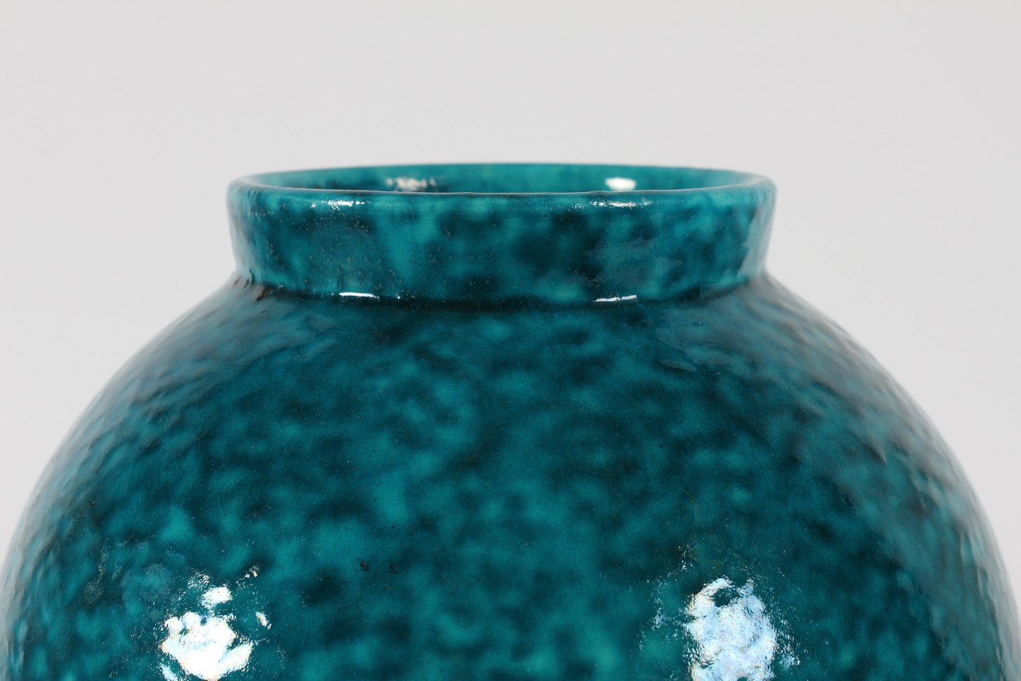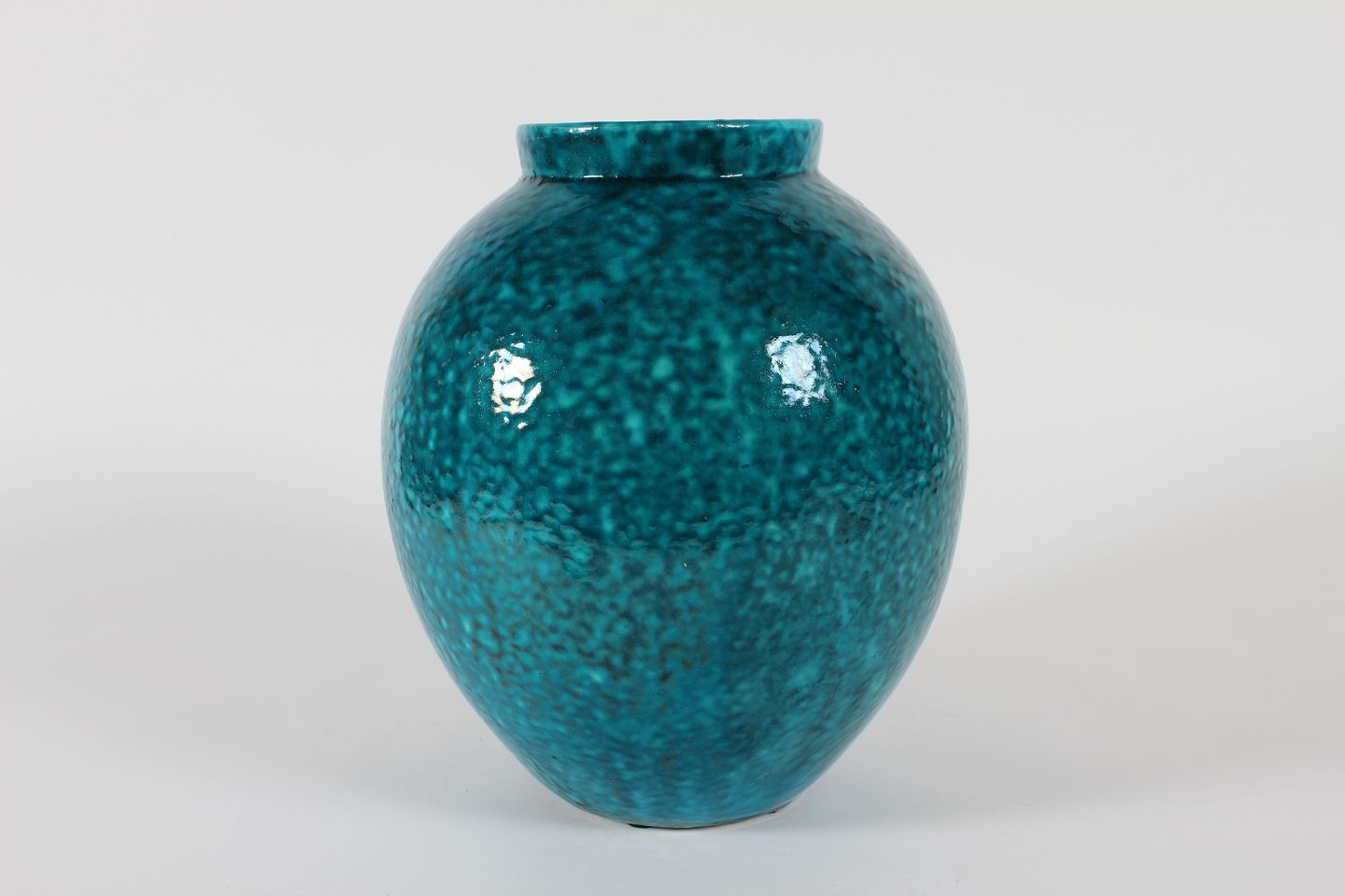 Herman A. Kähler Large Art Deco vase with turquoise glaze Sign. HAK Height 32 cm Diameter 25 cm Nice vintage condition