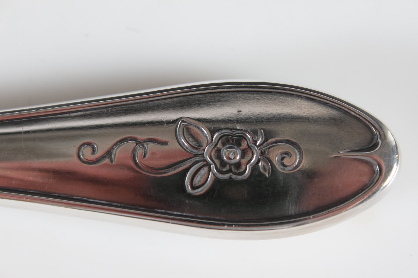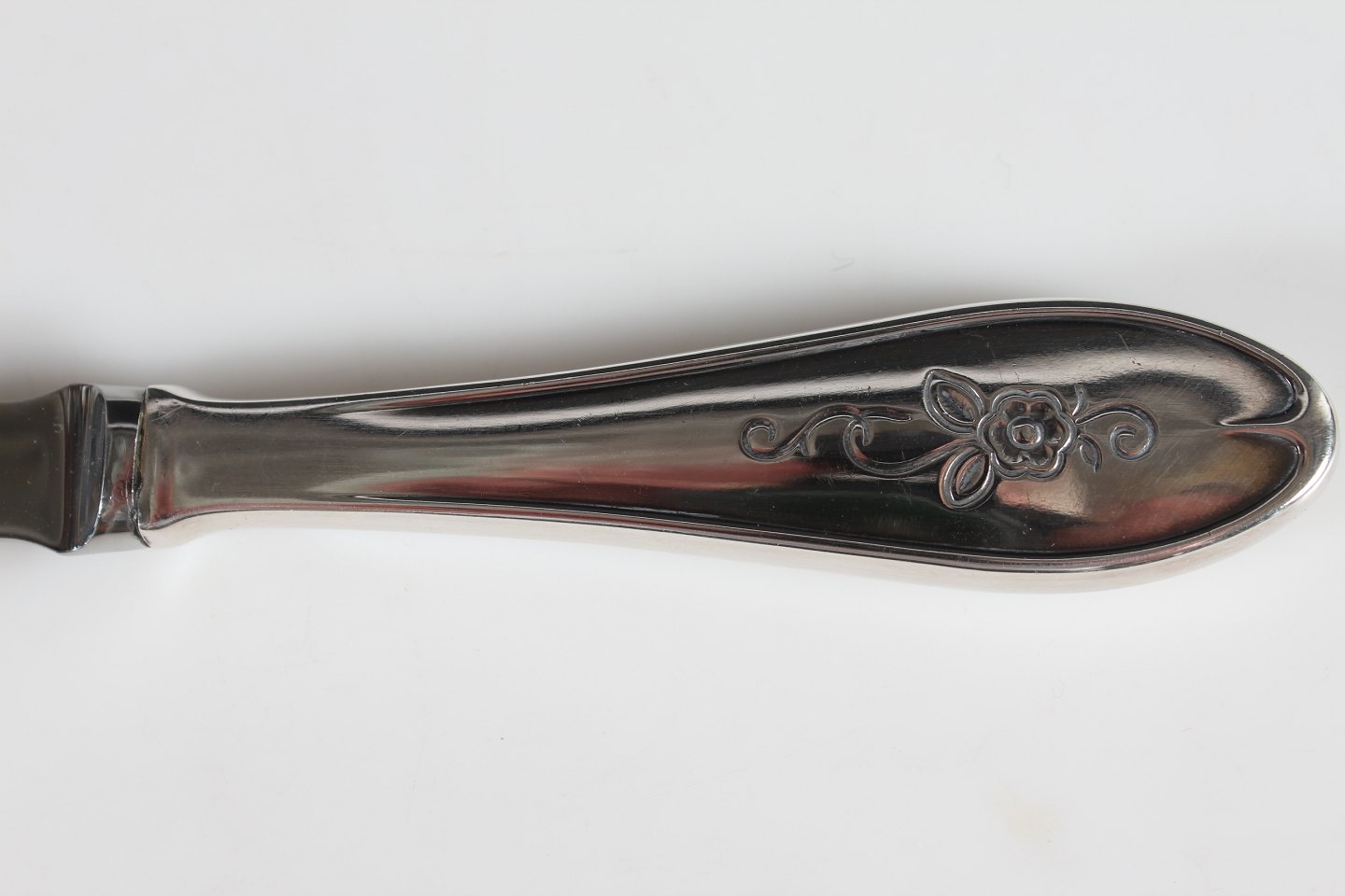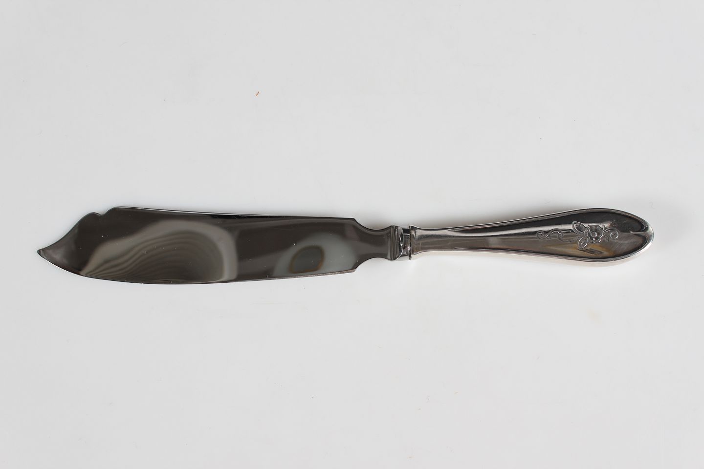 Dansk sølvsmede håndarbejde Lagkagekniv m/floral mønster fremstillet af ægte 3-tårnet sølv Længde 27 cm Fin stand