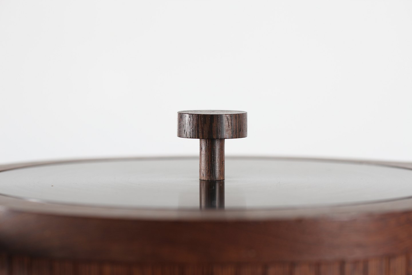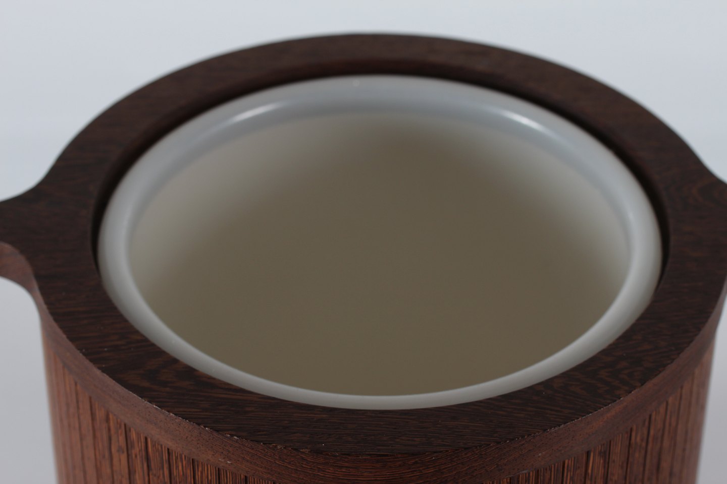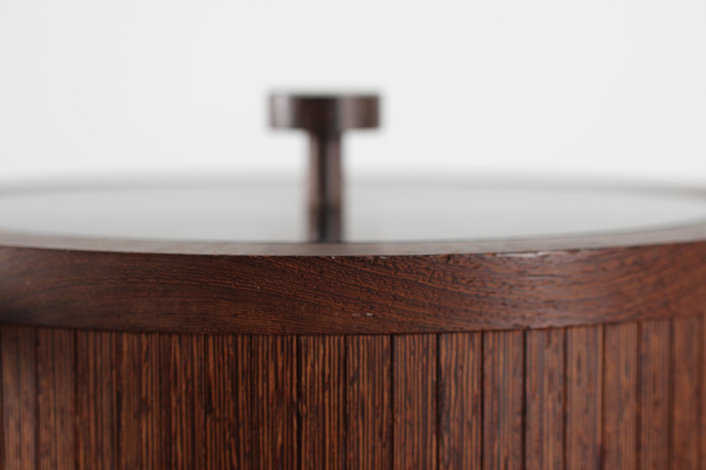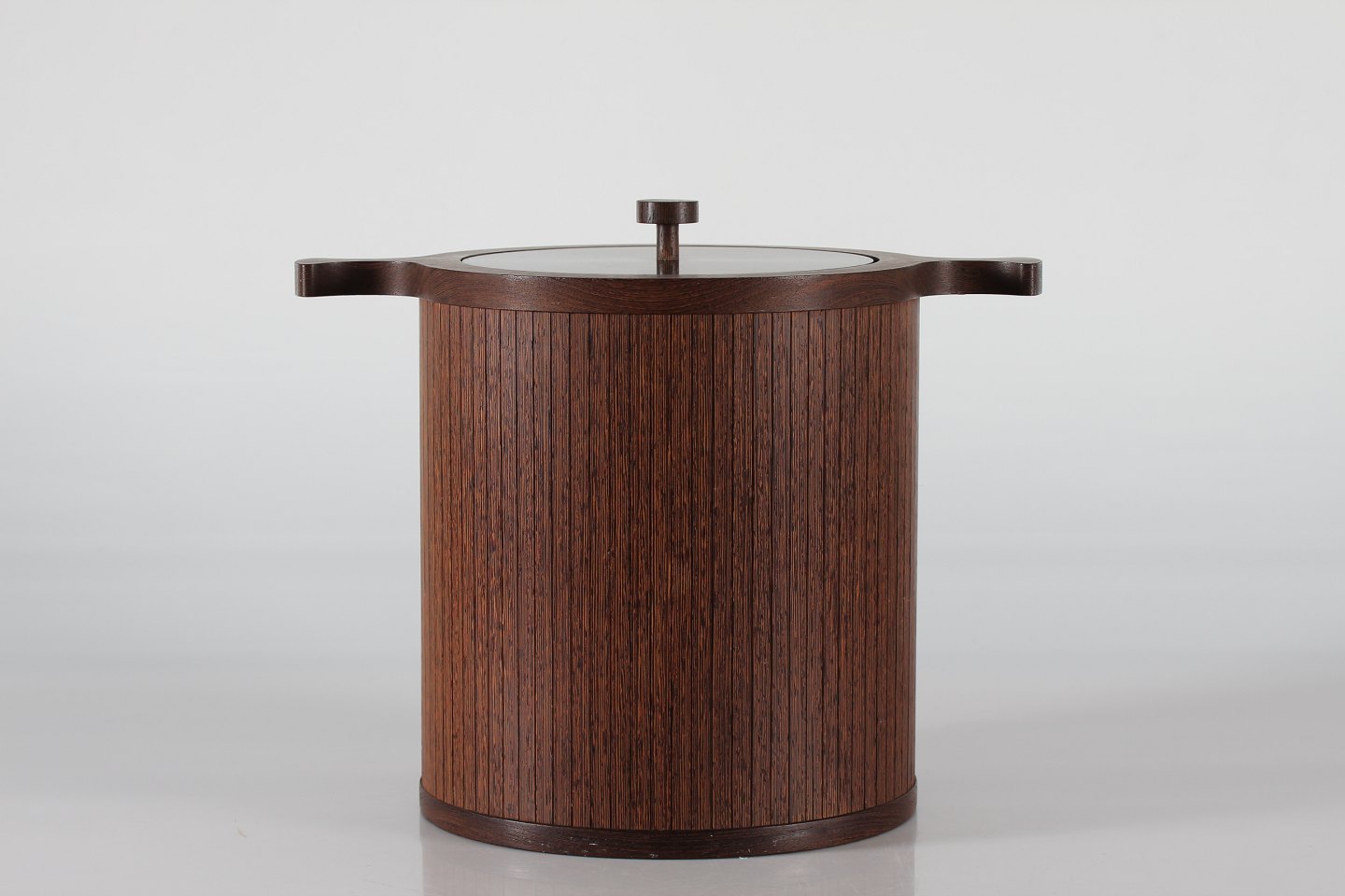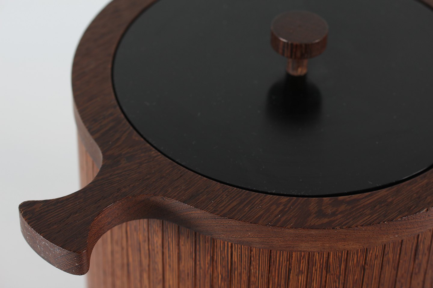 Theodor Skjøde Knudsen (1927-2007) King size ice bucket made of wengé with black plastic lid and white plastic insert Stamped: Skjøde, Denmark Height 31 cm Diameter 25 cm Very nice condition