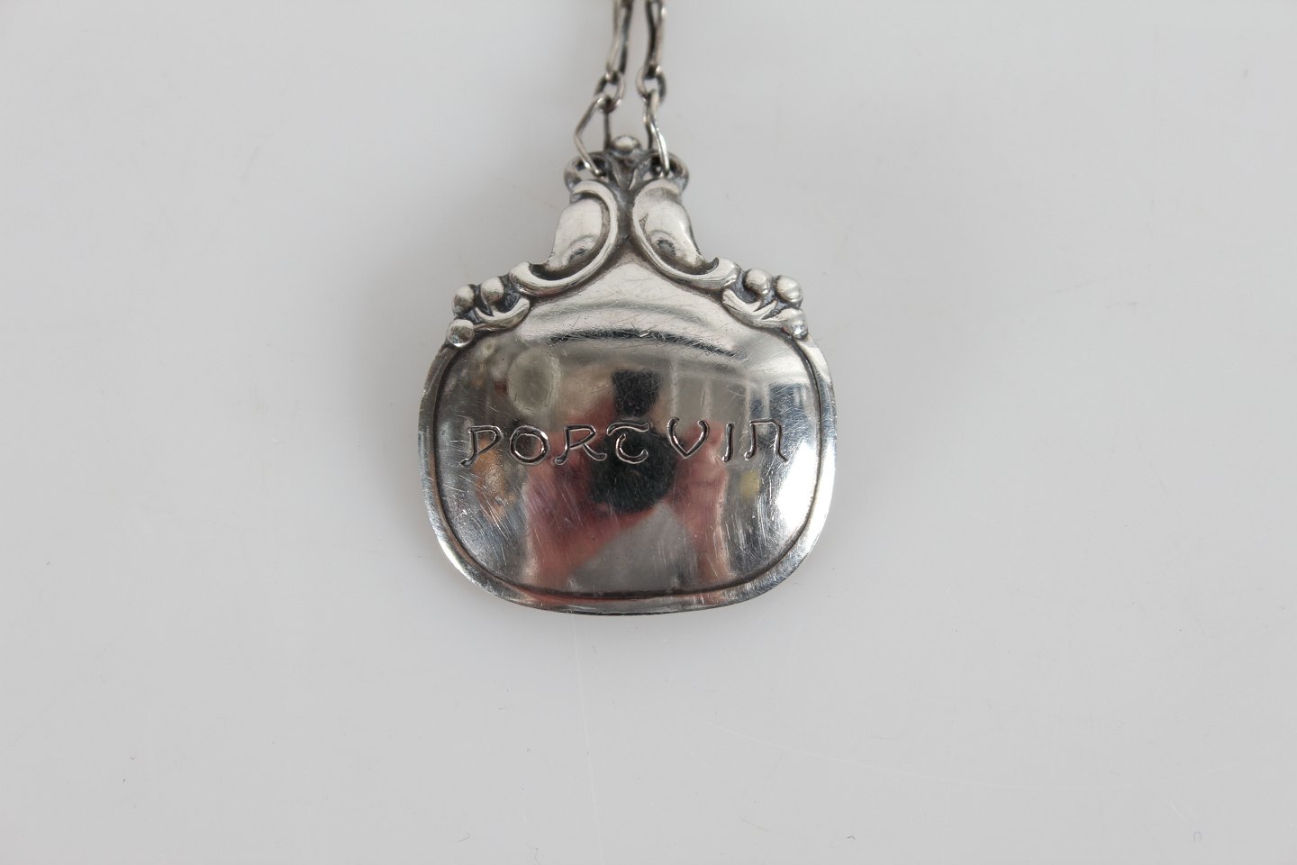 Georg Jensen 3 decanter labels made of sterling silver Engraved: Portvin, Sherry and Madeira Length with chain 8 cm Nice vintage condition