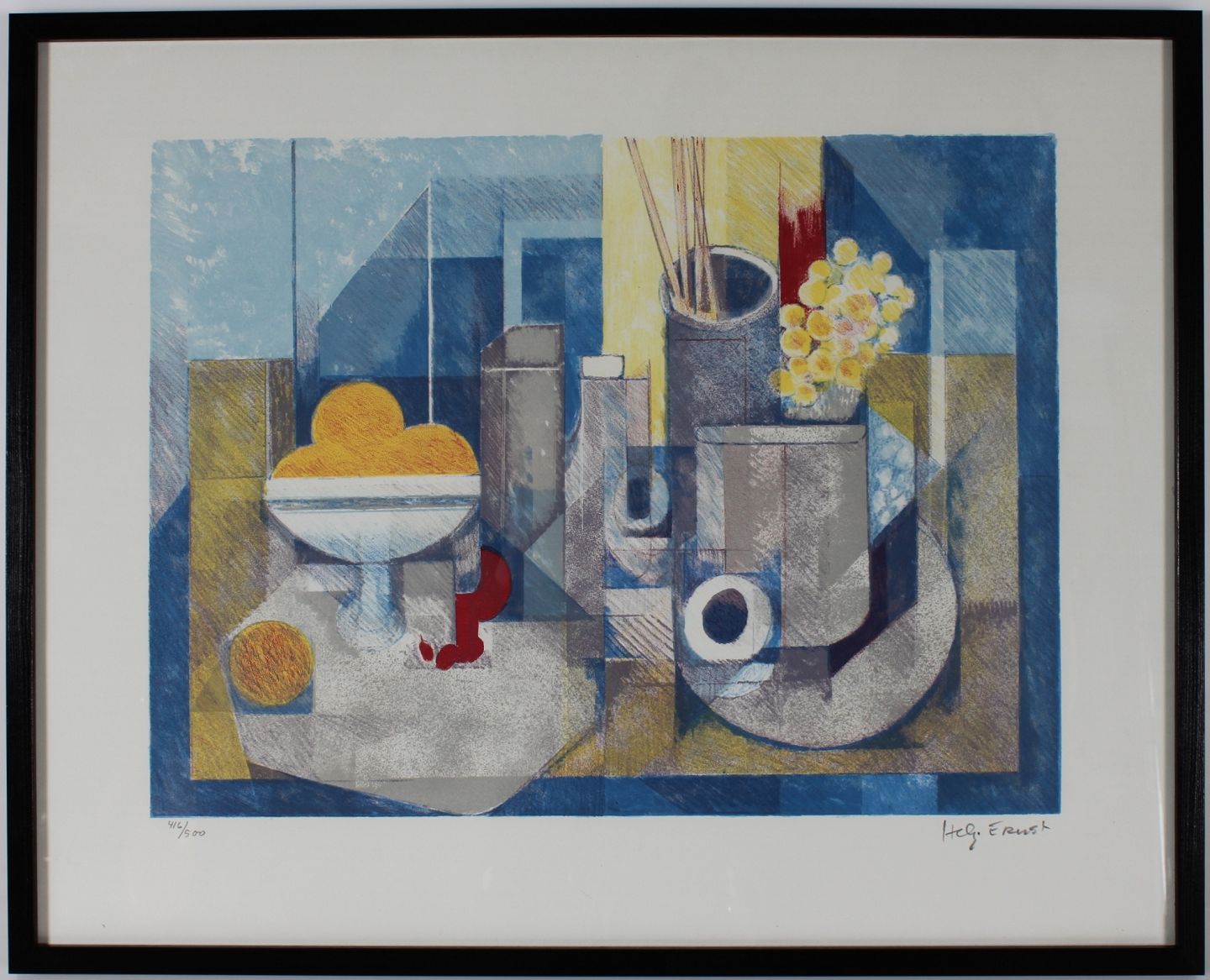 Lithography with fruit and vases