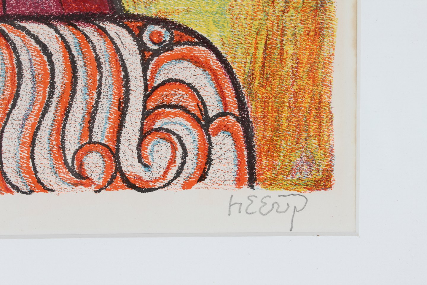 Henry Heerup (1907-1993) Litografi i farver 718/2700 "Inspirationsfuglen" Sign. Heerup Højde 48/31,5 cm Bredde 38/23,5 cm Indrammet i aluramme Fin stand Billedet kan beses efter aftale