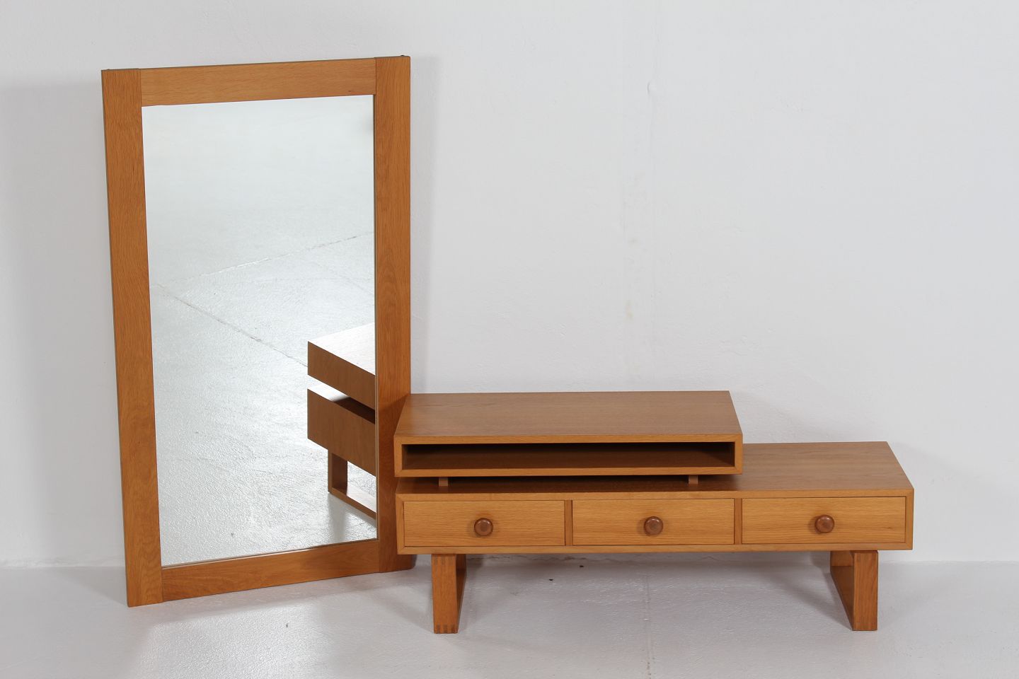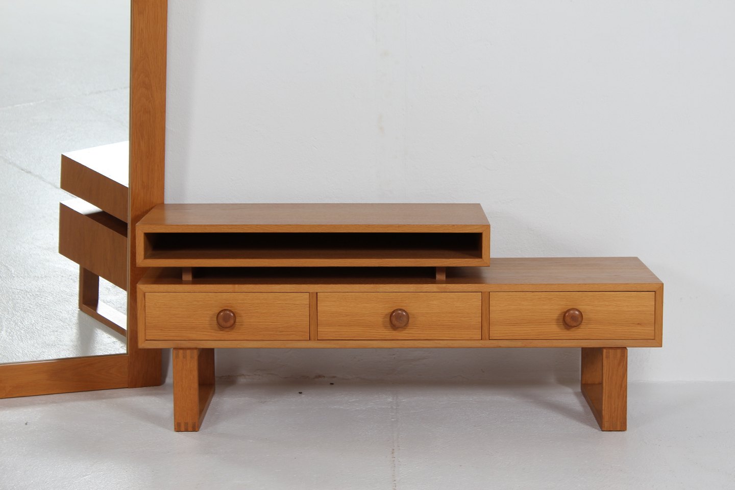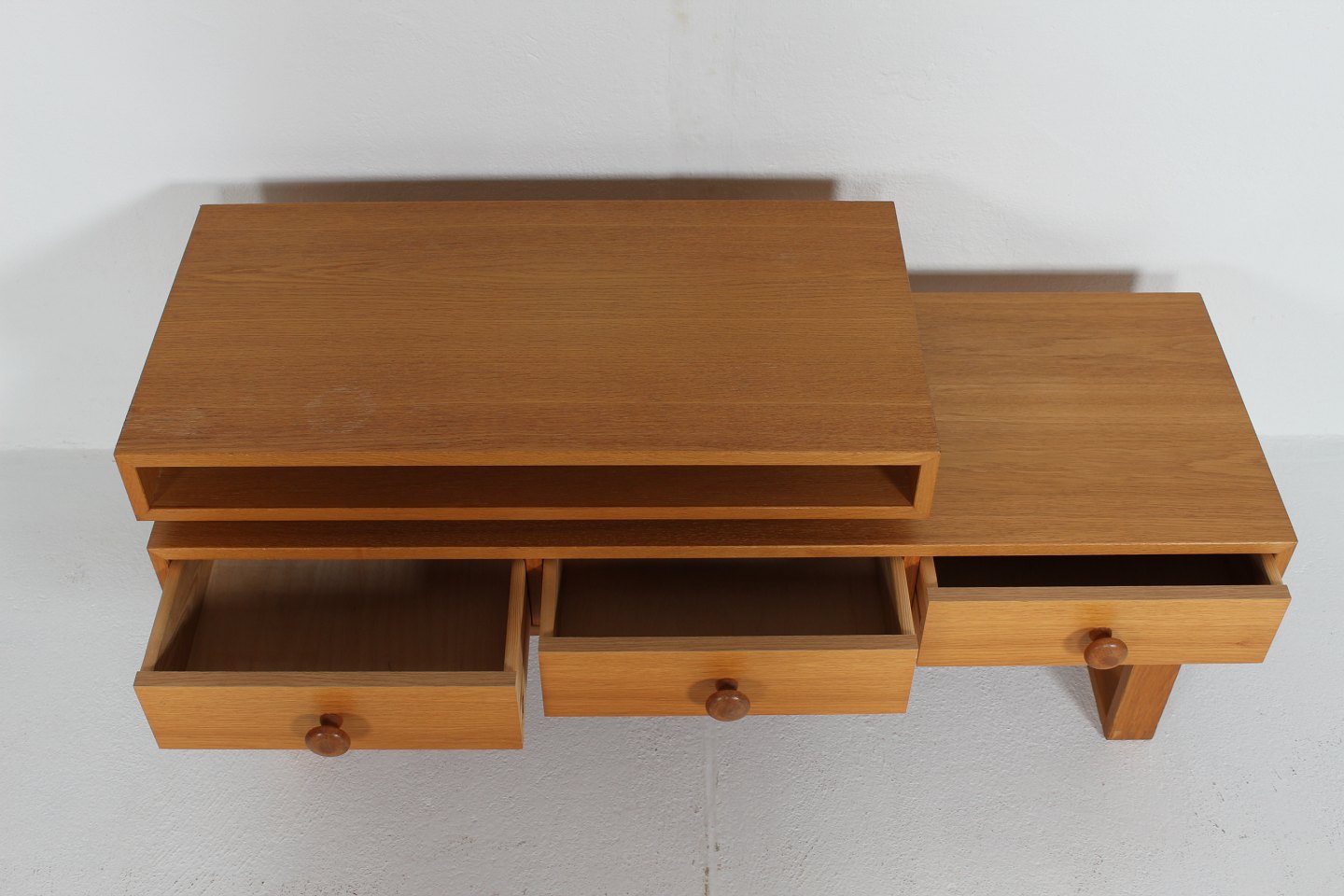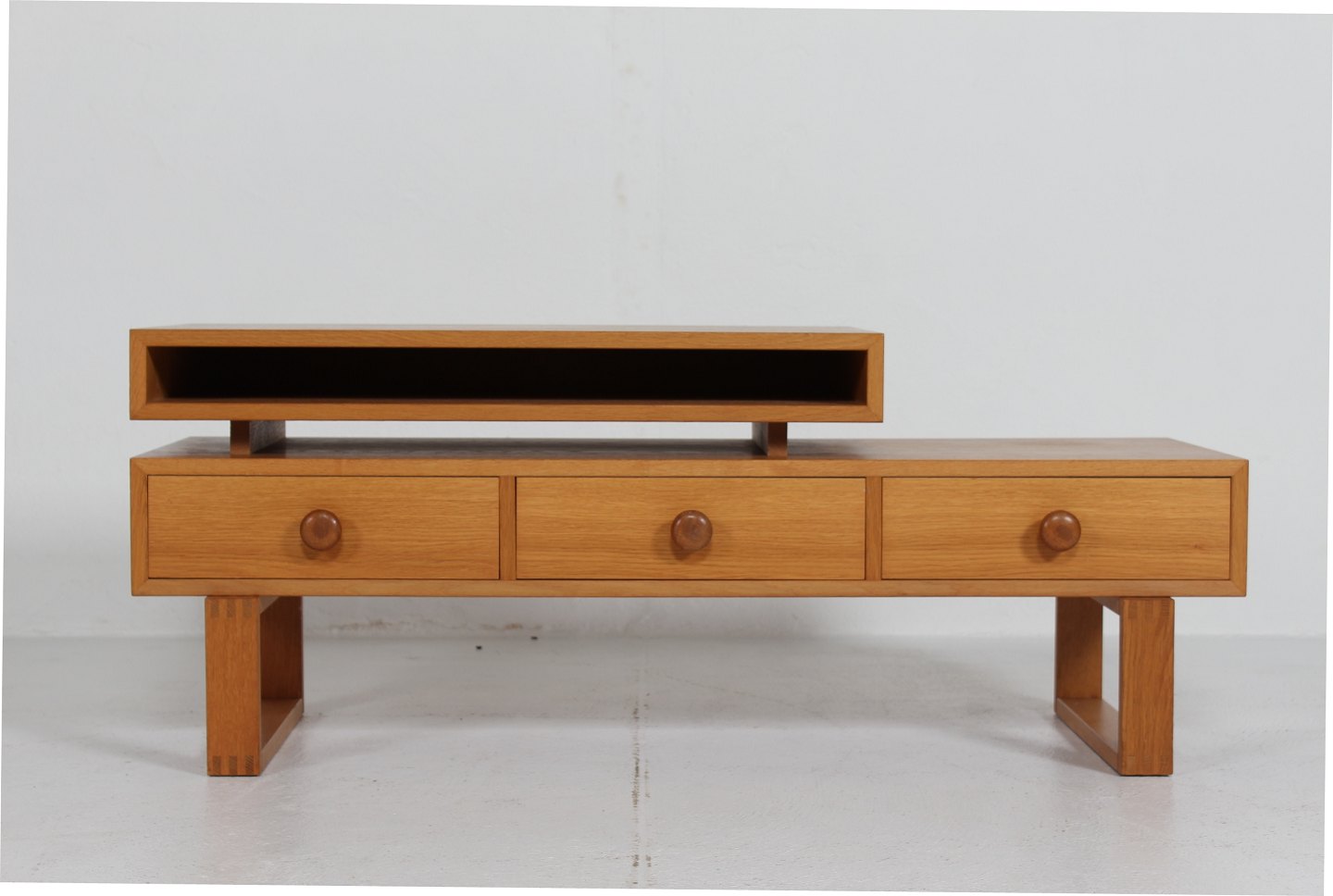 Lav kommode på medeben med fast hylde og 3 skuffer