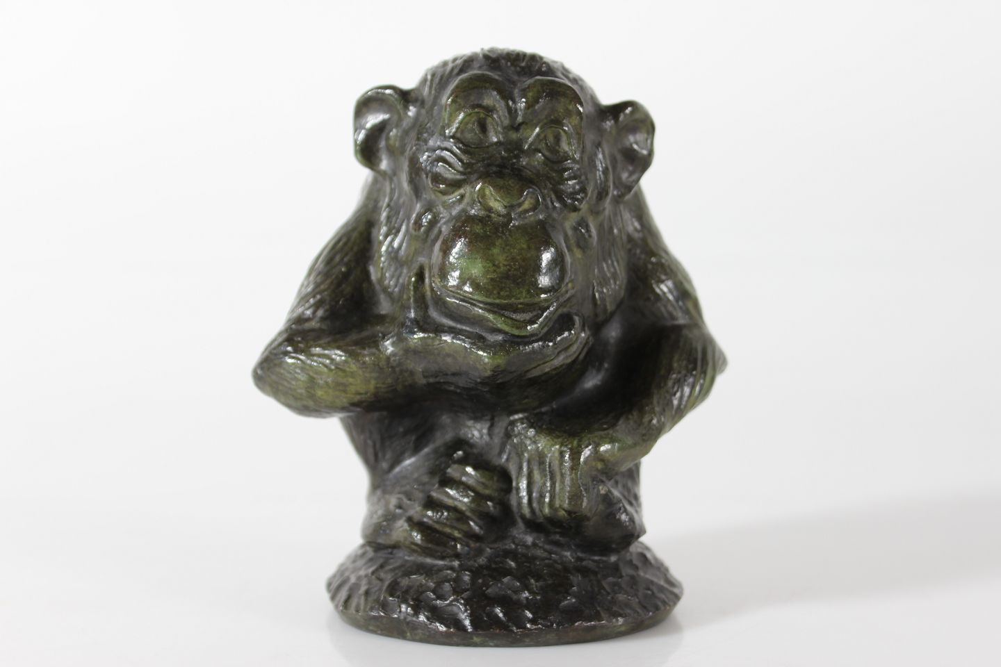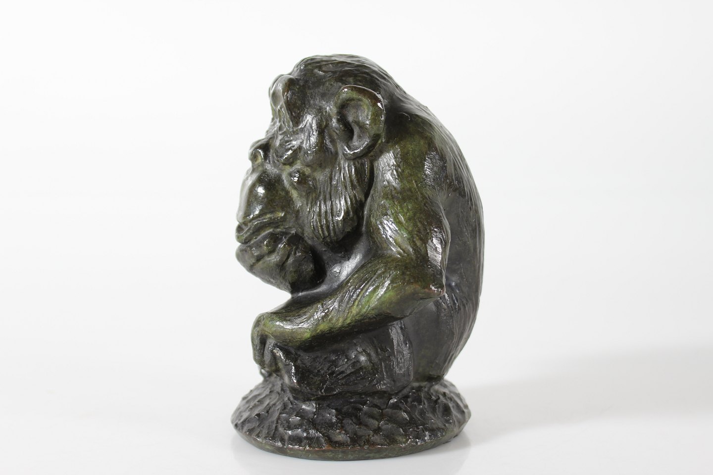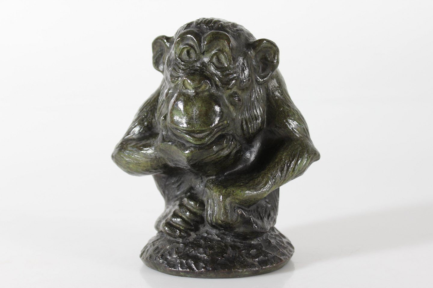 Bronze figurine Brooding chimpanzee made of bronze with green patina Without signature Height 15.5 Nice condition with good patina