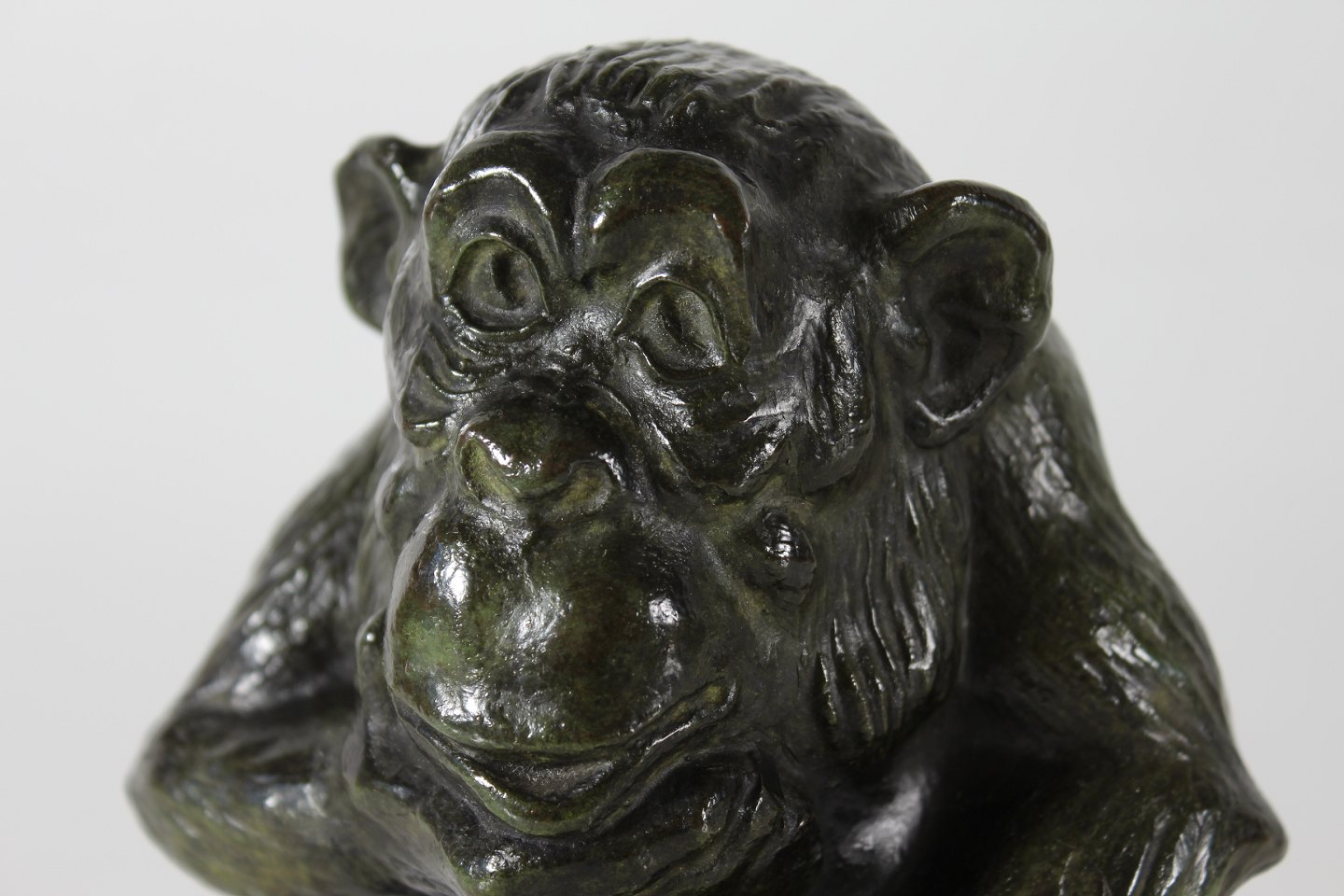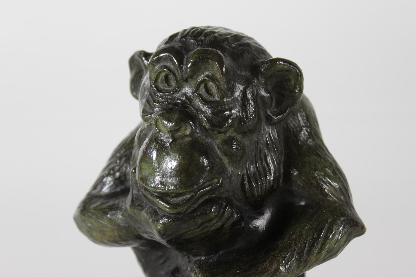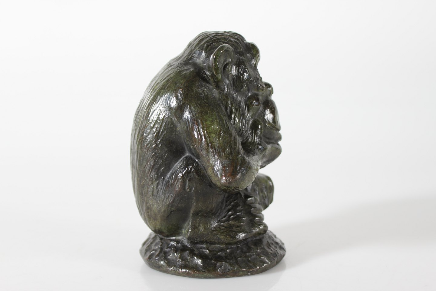 Bronze figurine Brooding chimpanzee made of bronze with green patina Without signature Height 15.5 Nice condition with good patina