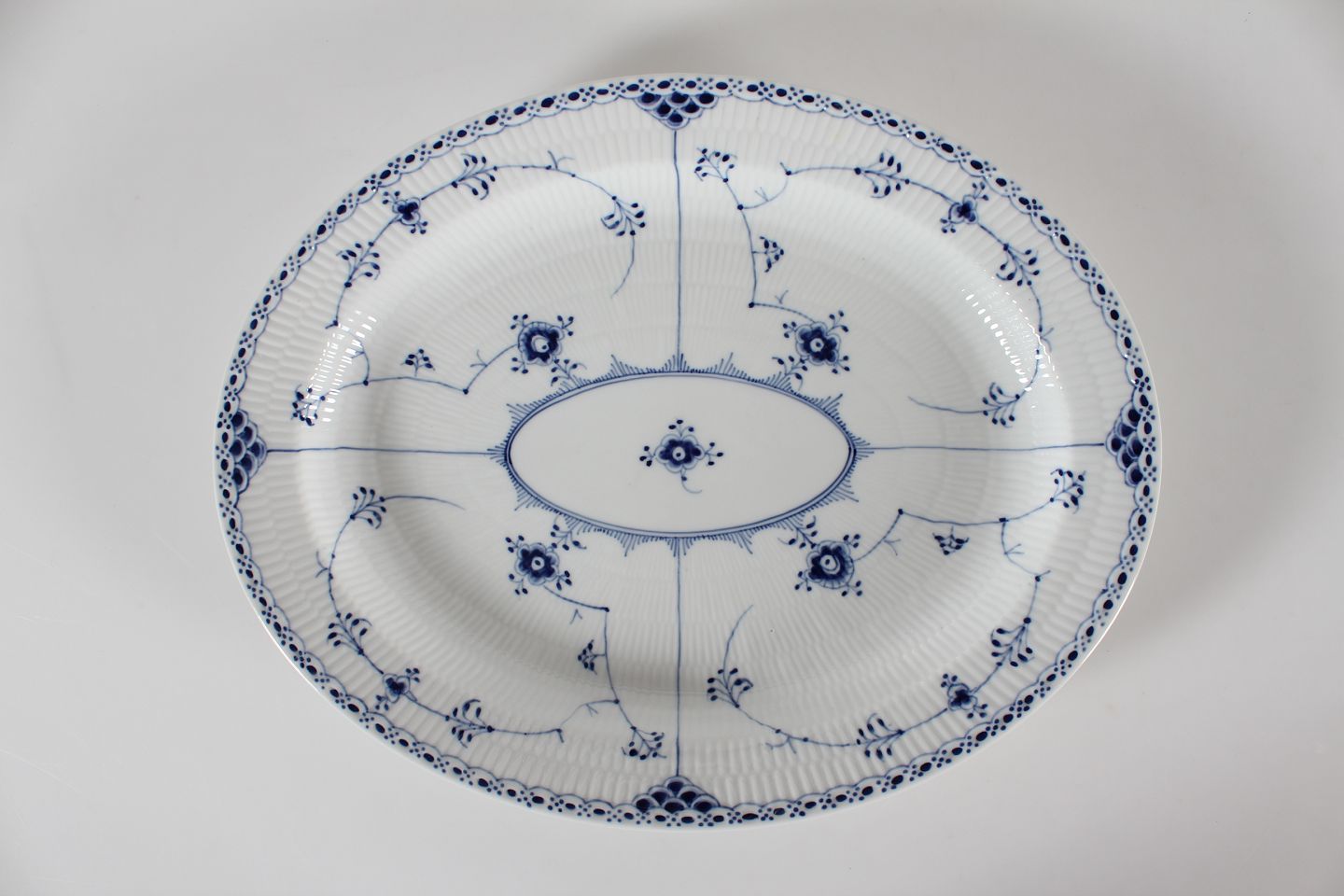 Royal Copenhagen Musselmalet Halvblonde Stort oval fad nr. 1/534 med stempel fra 1943 Længde 41 cm 1. sortering fin stand uden skår - se billede af lille glasurfejl