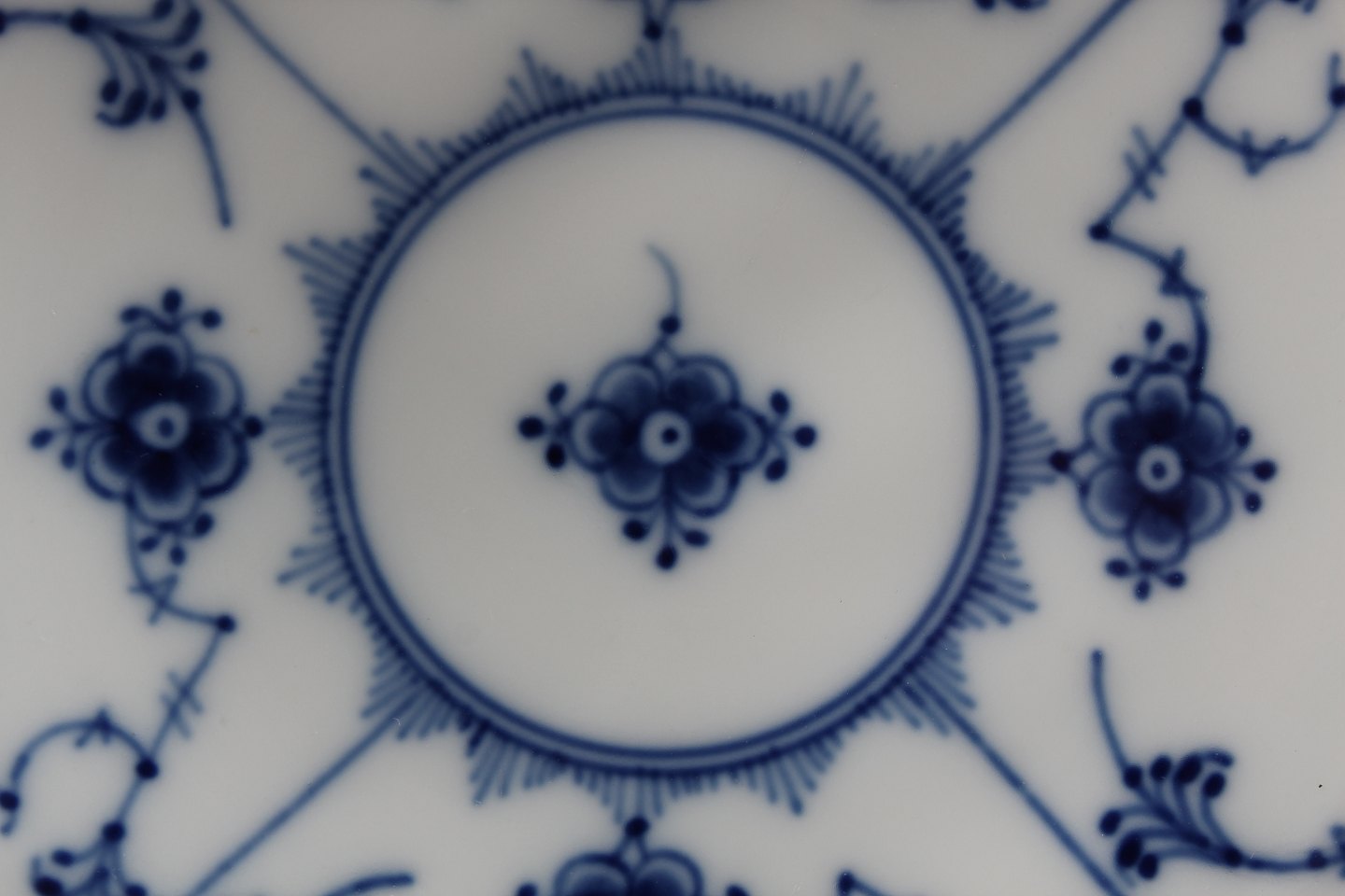 Royal Copenhagen Musselmalet Helblonde Frugtskål med blondekant model nr. 1/1054 med stempel fra perioden 1969-74 Diameter 19 cm Højde 6 cm Fin fejlfri 1. sortering