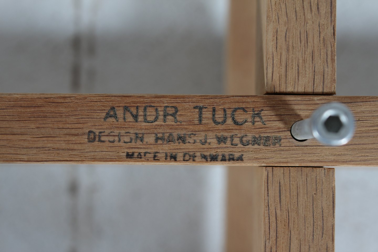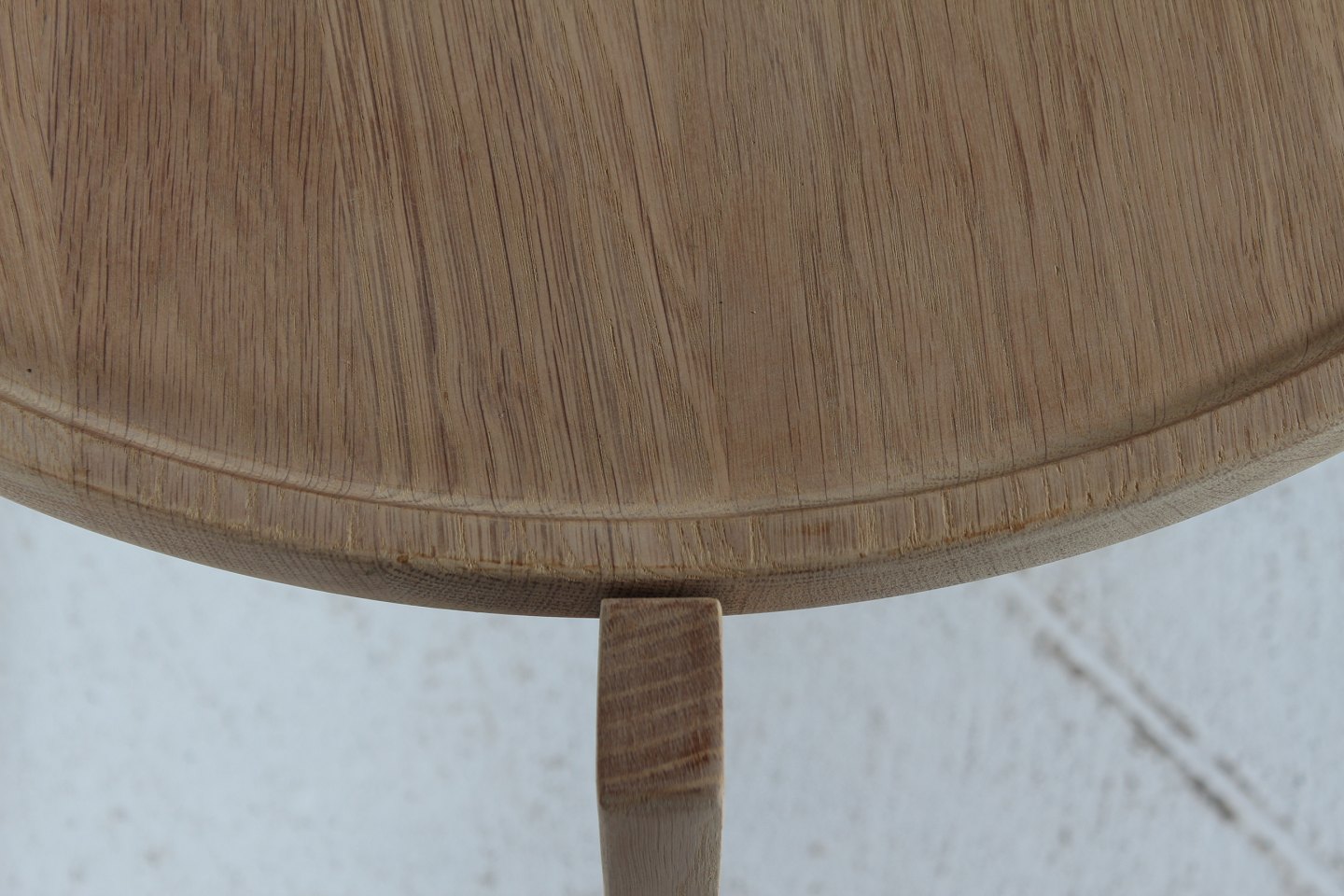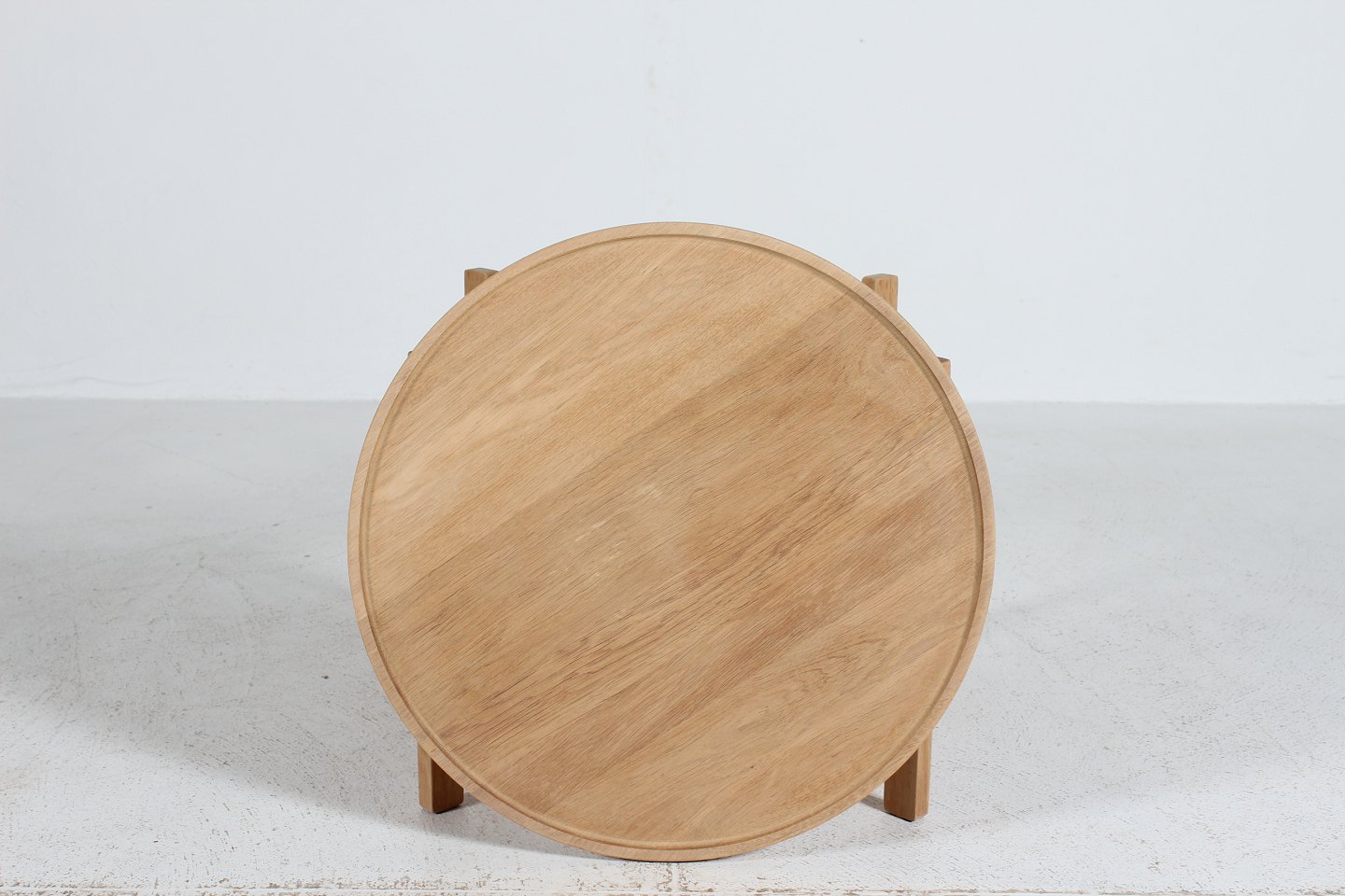 Hans J. Wegner (1914-2007) Round tray table most likely model AT 36 made of solid oak with soap treatment Manufacturer: Andreas Tuck Diameter incl. frame 70.5 cm Height 48.5 cm Very nice condition