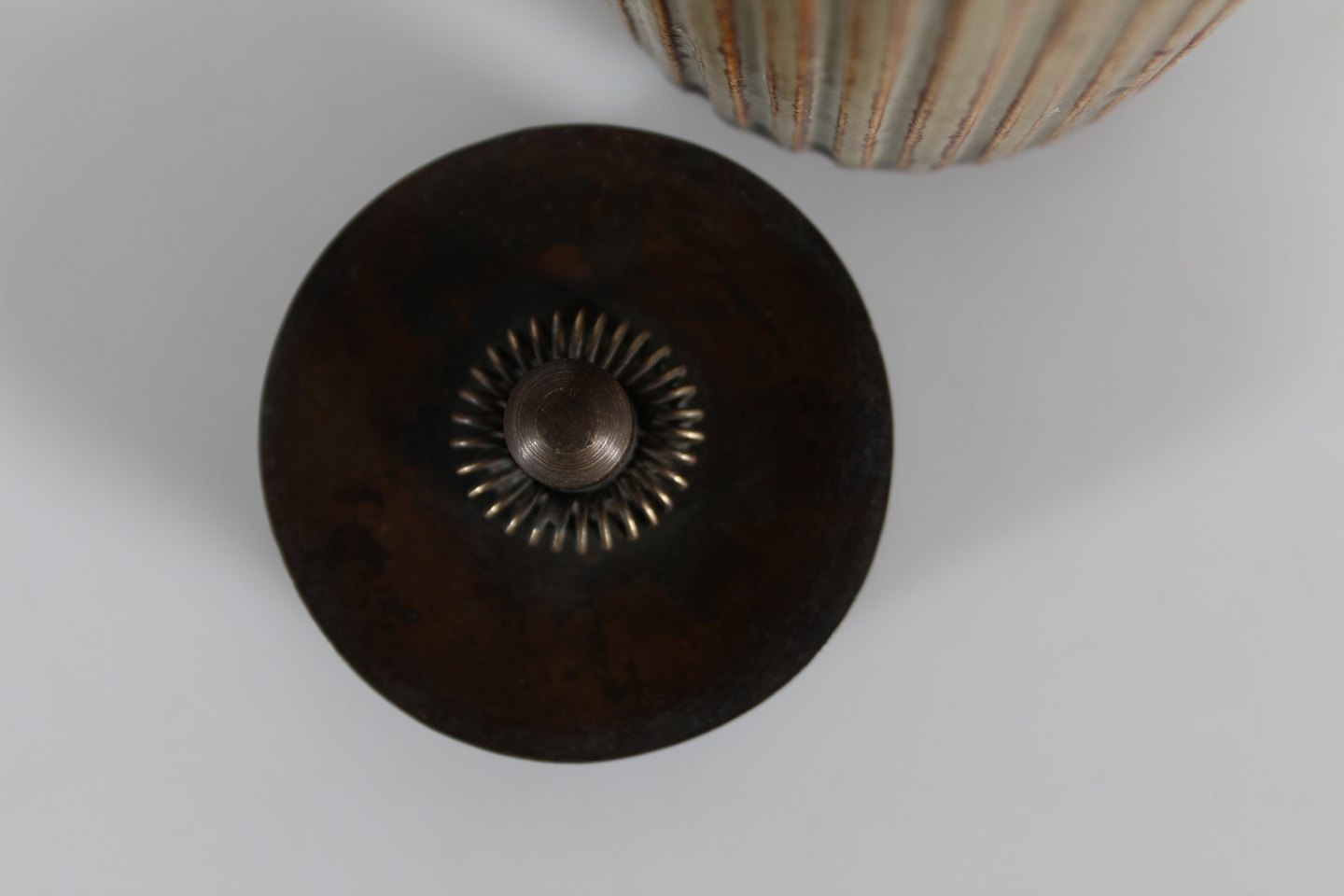 greyish-brown colours with lid of patinated bronze