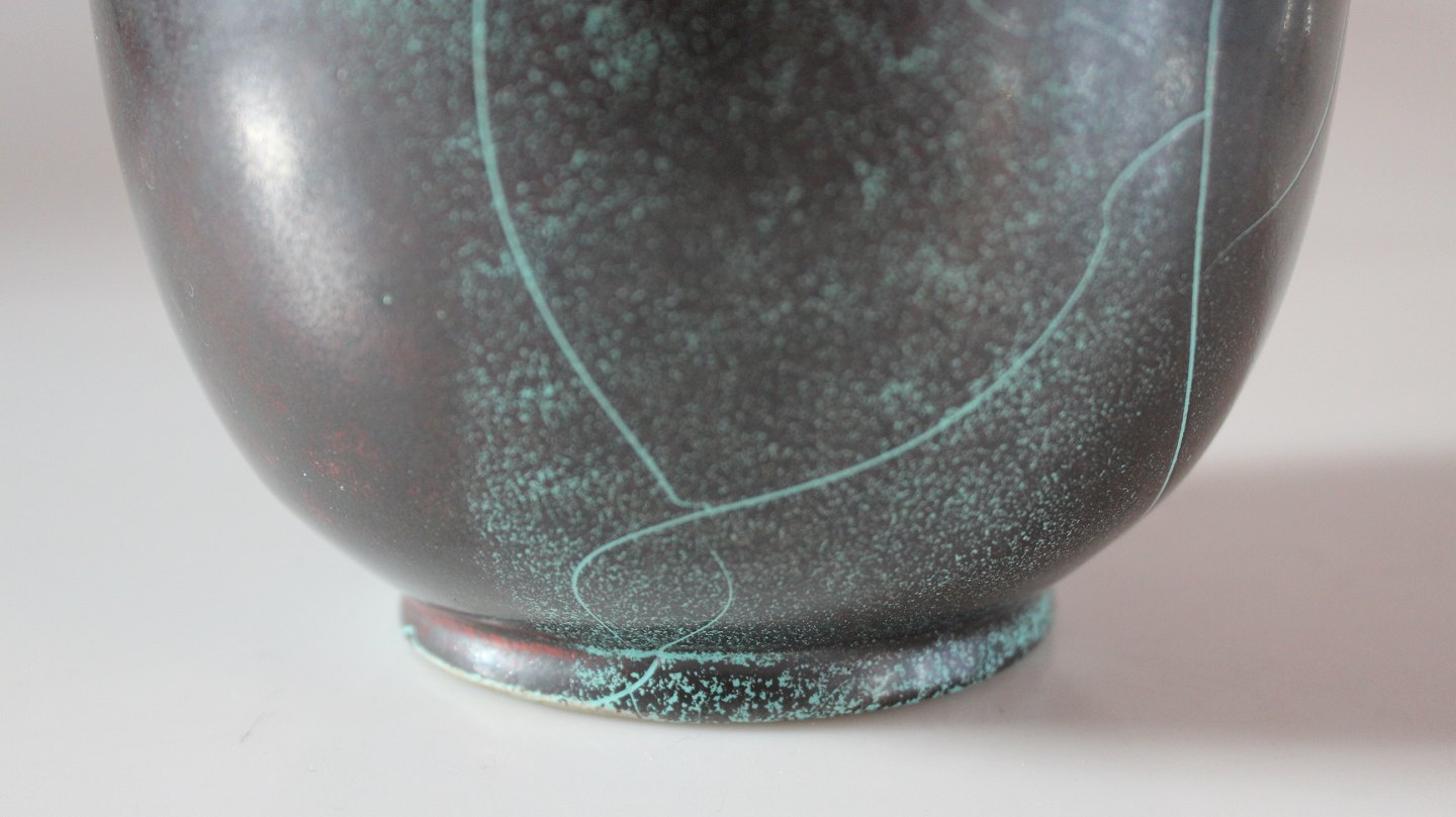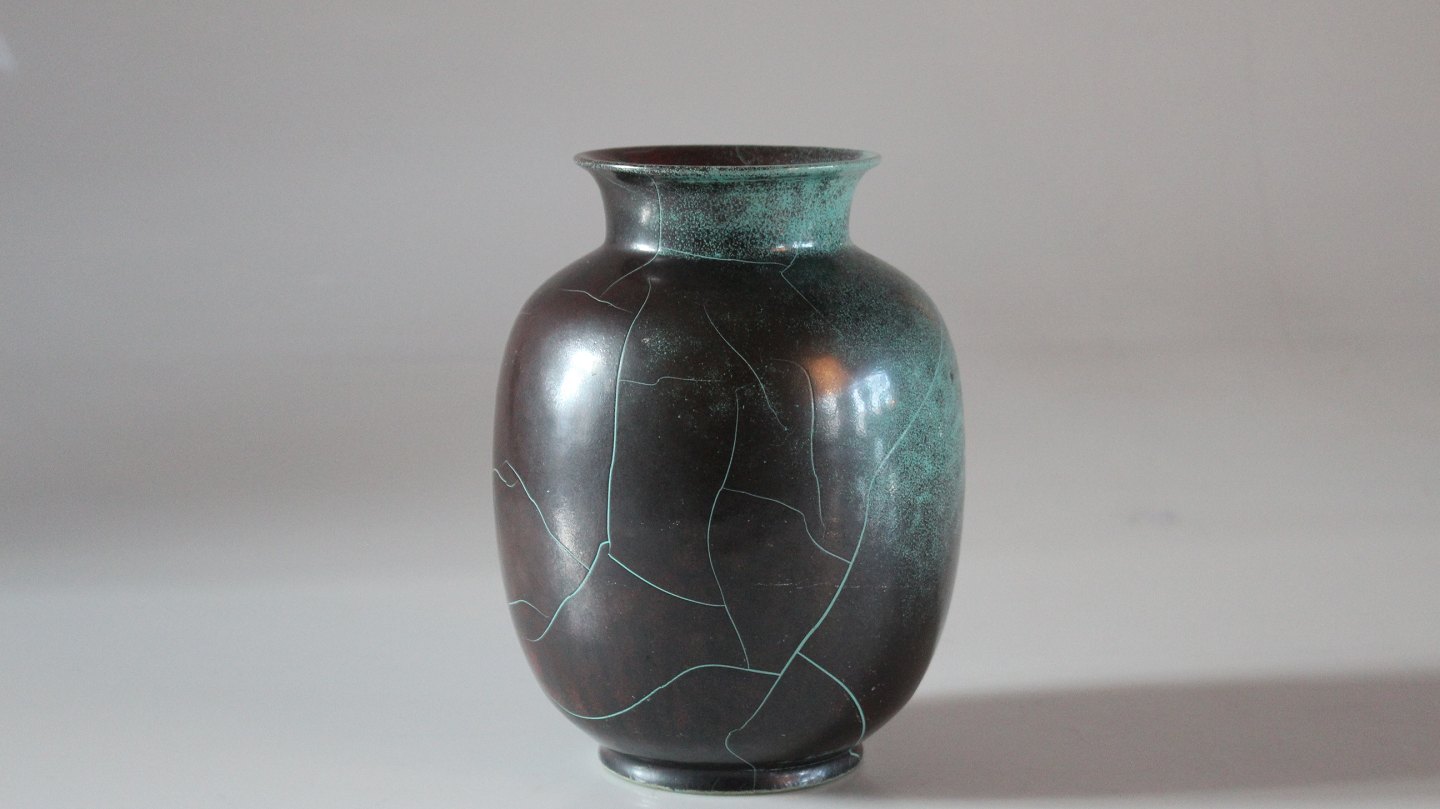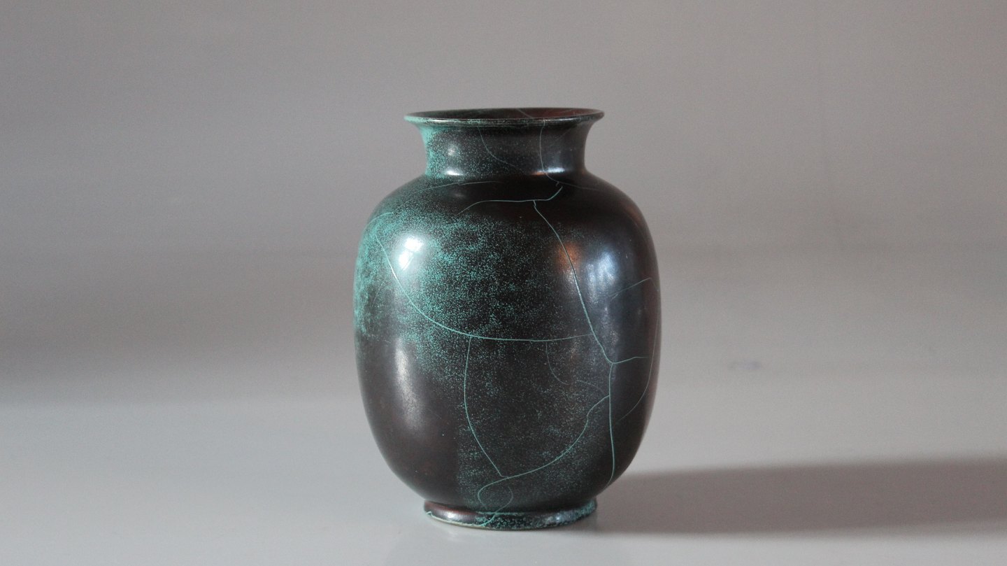 Richard Uhlemeyer (1900-1954) Ceramic vase with crackled glaze in reddish brown and turquoise shades Diameter 15 cm Height 20.5 cm Very nice condition - no chips, cracks or repair